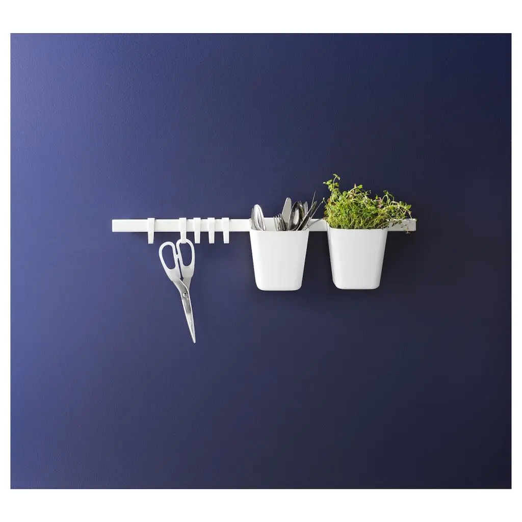 СУННЕРСТА Рейлинг с 4 крючками,2 контейнерами, белый,