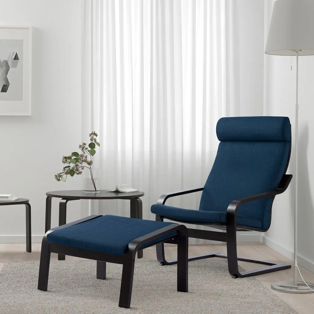 ПОЭНГ Кресло, черно-коричневый, Шифтебу темно-синий,