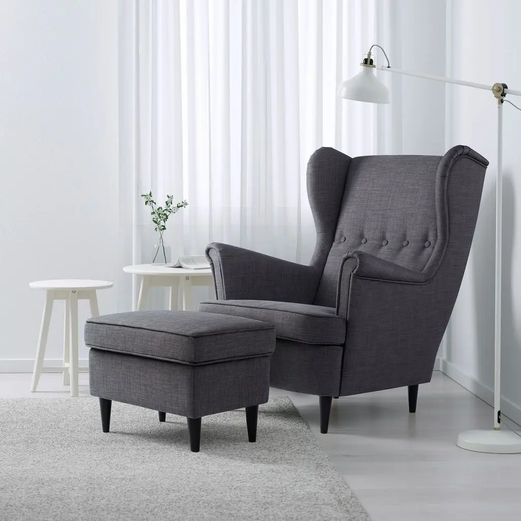 СТРАНДМОН Кресло с подголовником, Шифтебу темно-серый,
