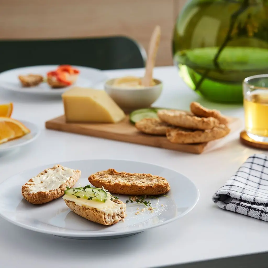 Хрустящие цельнозерновые хлебцы. Подавайте к завтраку, с маслом, сыром и мармеладом или йогуртом.