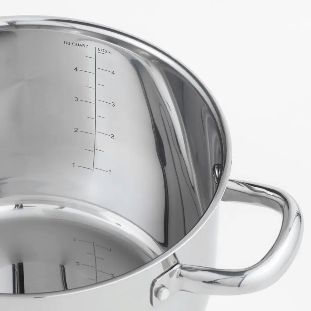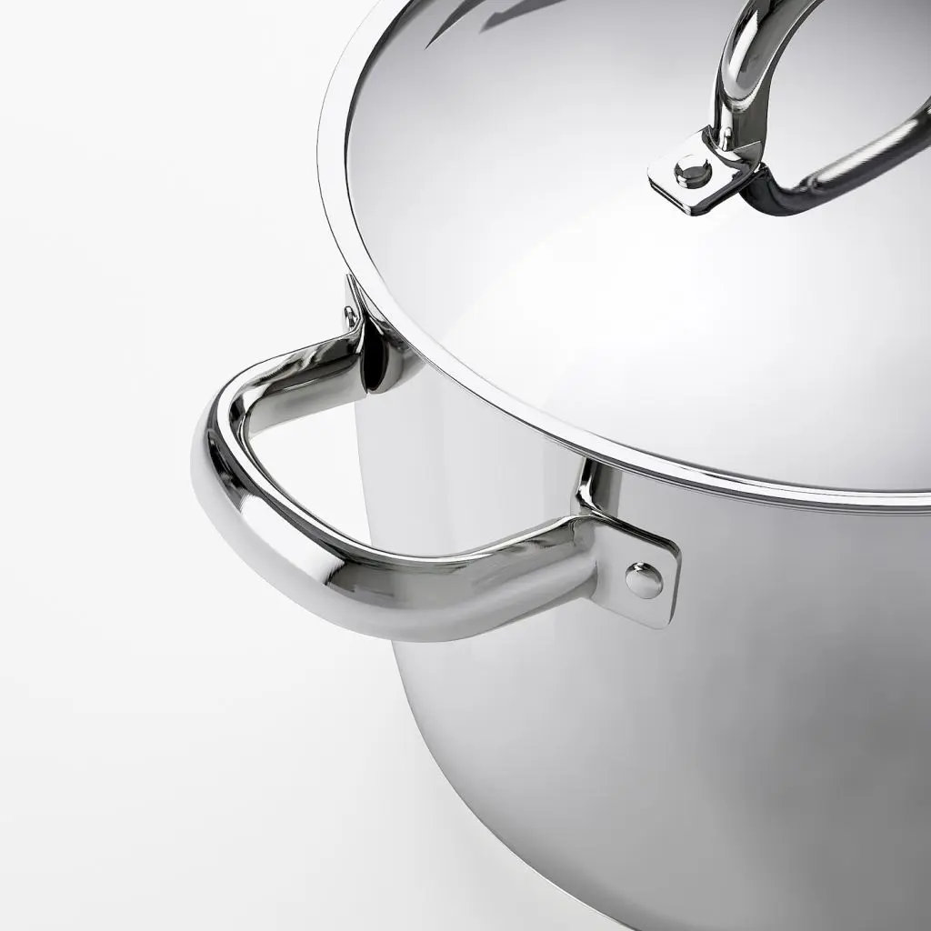 Трехслойная конструкция дна: слой алюминия между двумя слоями нержавеющей стали. Обеспечивает равномерное нагревание, поэтому пища не пригорает и не прилипает к поверхности.Подходит для всех типов варочных панелей, включая индукционную.Благодаря отверстию для вентиляции давление снижается и содержимое не выкипает.Сделано из нержавеющей стали. Прочный и простой в уходе материал.Использование крышки обеспечивает быстрое закипание, что сокращает время приготовления и расход энергии.Посуда полностью изготовлена из металла, поэтому ее можно также использовать в духовке.