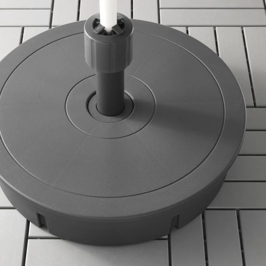 Опора зонта от солнца прослужит долго и сохранит первоначальный внешний вид, т. к. она устойчива к УФ-излучению, рассчитана на длительное воздействие солнечных лучей, а также устойчива к выцветанию.Основание зонта от солнца должно быть полностью заполнено песком.Необходимо примерно 25 литров (35 кг) песка.Дизайнер