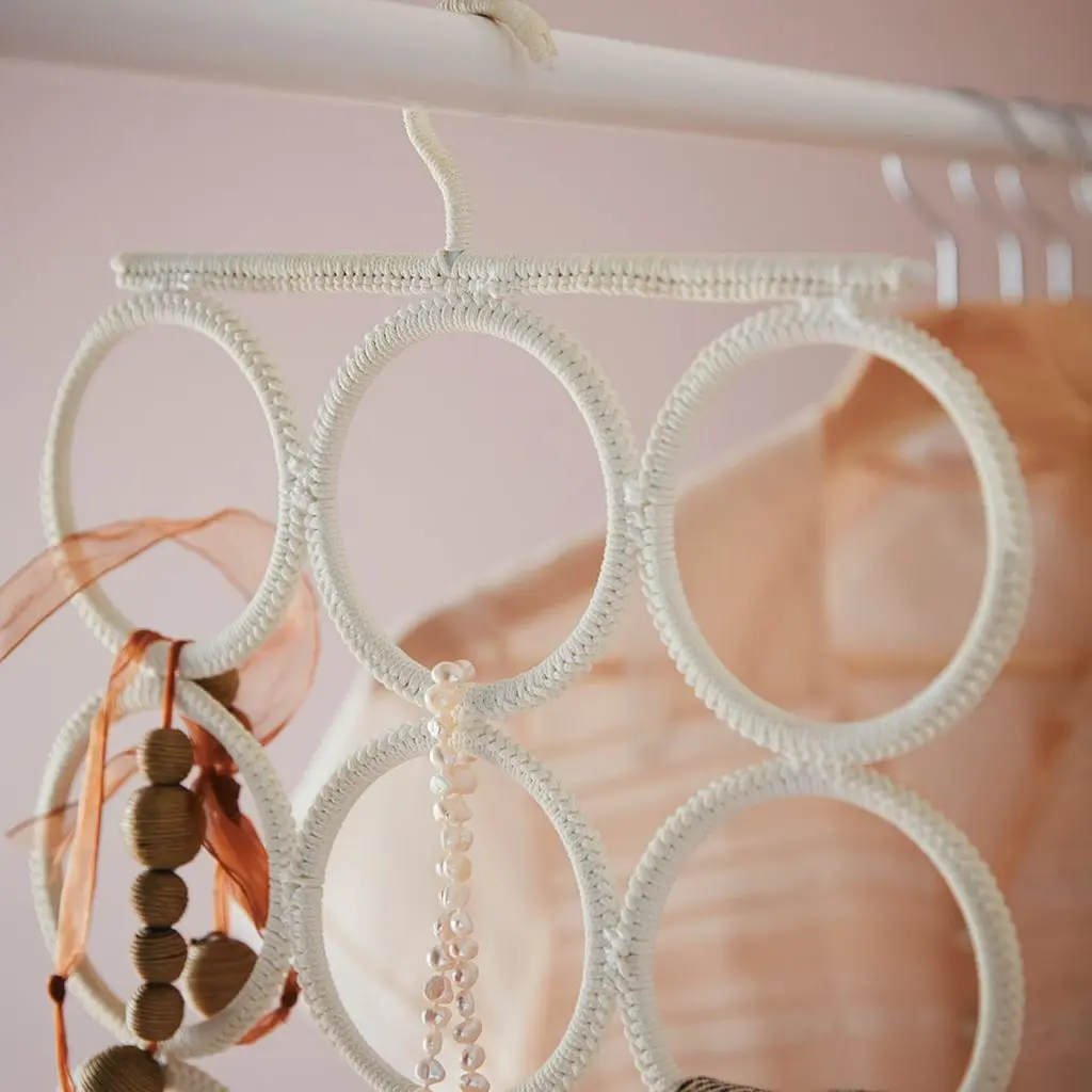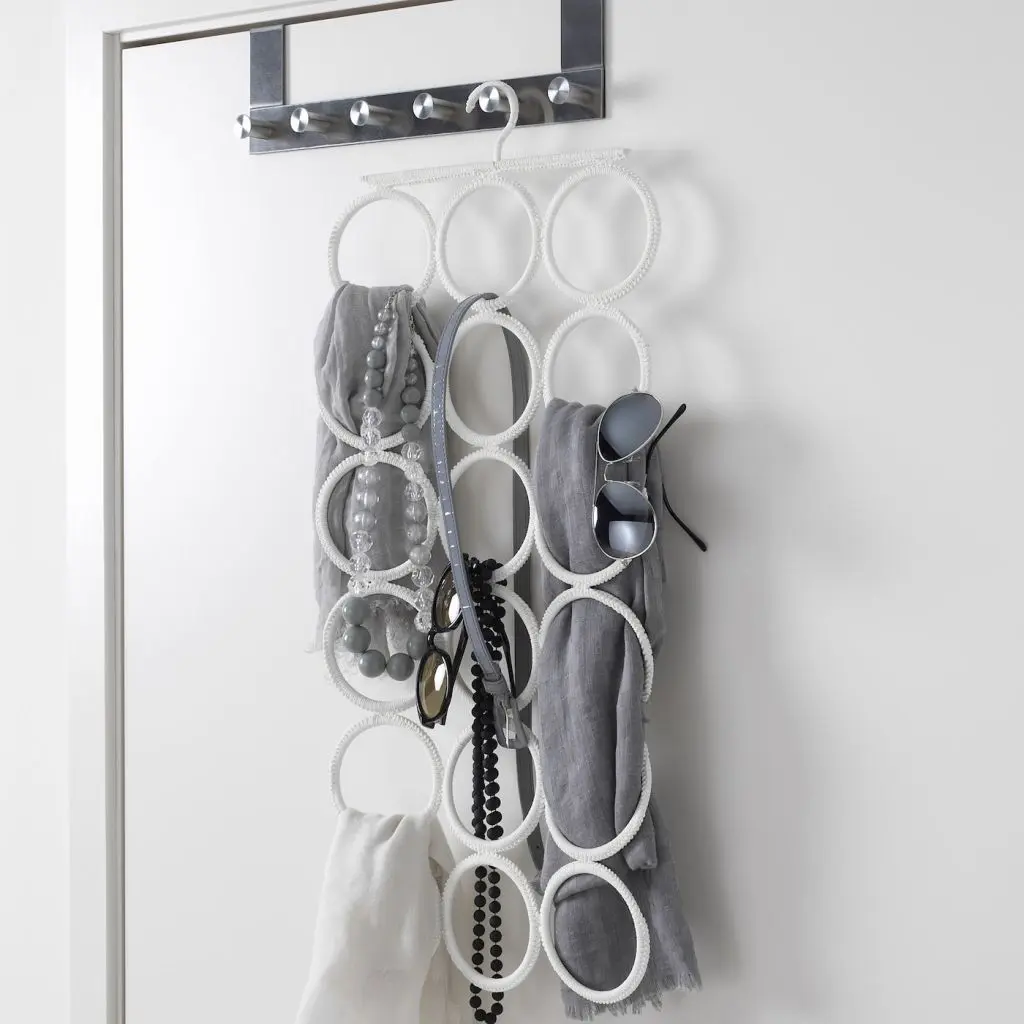 Эта многофункциональная вешалка идеальна для хранения шарфиков, галстуков или ремней. На ней поместится до 16 аксессуаров, которые таким образом займут в гардеробе не больше места, чем обычные плечики.