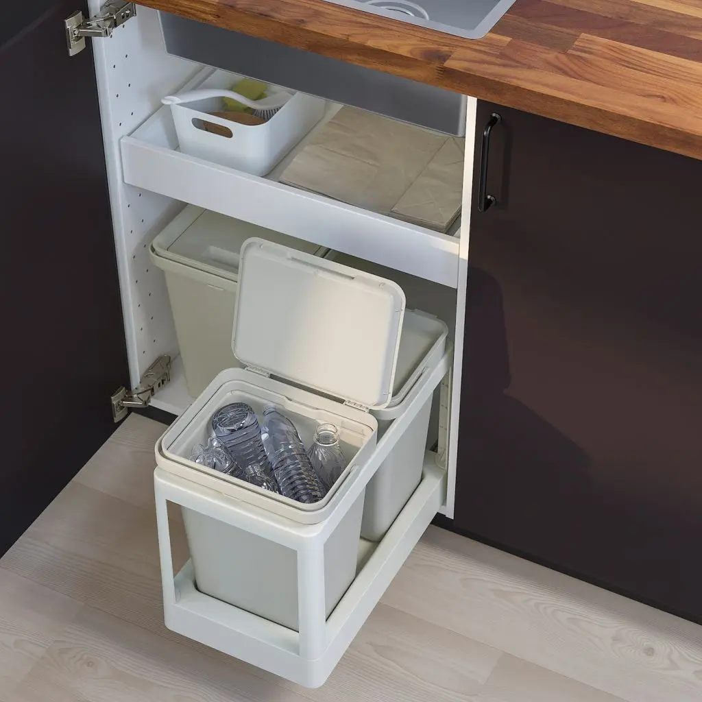 Контейнеры ХОЛЛБАР предназначены для сортировки разных видов отходов. Этот контейнер подходит для консервных банок, небольших упаковок, например от гигиенических товаров. Также в нем можно хранить рулоны бумаги или сумки для похода в магазин.Контейнеры ХОЛЛБАР штабелируются для экономии места. Поставьте контейнеры одинакового размера один на другой, также маленькие контейнеры можно ставить на большие.Контейнеры можно поставить отдельно в любом помещении дома или размесить их в шкафу или ящике.Крышка прилагается, ее легко снять, чтобы вымыть или если вы решите использовать контейнер открытым.Установив выдвижную раму или опору ХОЛЛБАР в высокий ящик МАКСИМЕРА, вы обеспечите устойчивое положение контейнеров и удобный доступ к ним.На кухне контейнер следует ставить как можно ближе к мойке, чтобы выбрасывать пищевые отходы было удобнее.Благодаря скругленным углам контейнеры проще мыть.Удобно переносить благодаря складывающейся ручке.Кольцо по верхнему краю обеспечивает фиксацию пакета для мусора. А снаружи пакет не будет виден. Кольцо можно снять, чтобы вымыть контейнер или если вы хотите использовать контейнер без негоДизайнер