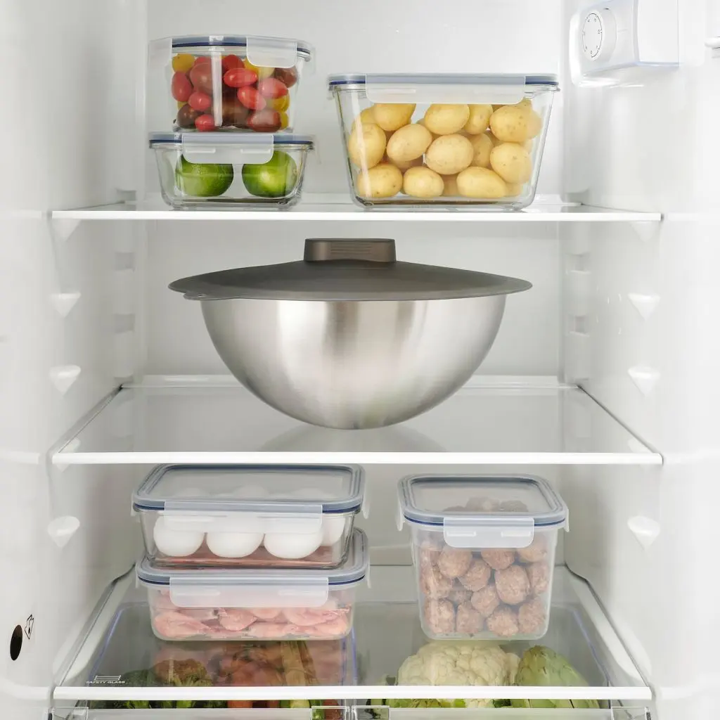 Крышка обеспечивает эффект вакуума, сохраняя свежесть и температуру блюда в контейнере.Крышки можно мыть в посудомоечной машине и использовать вместо фольги и пищевой пленки.Защитит от брызг внутреннюю поверхность СВЧ-печки и духовки.Дизайнер