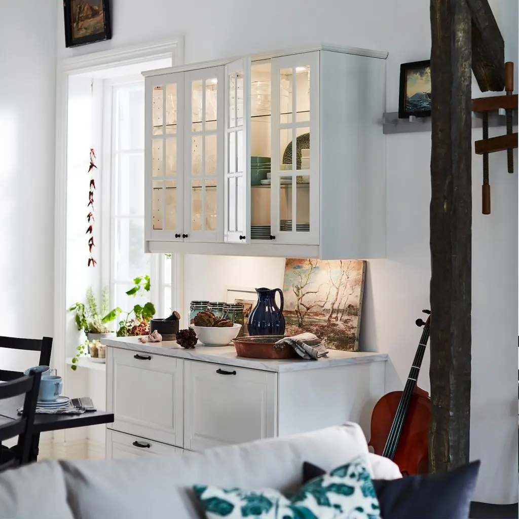Пусть ваша посуда заиграет на свету. Подсветка создает располагающую атмосферу и обеспечивает отличный обзор содержимого шкафа. Ее легко установить самостоятельно, вам не потребуется обращаться к электрику.