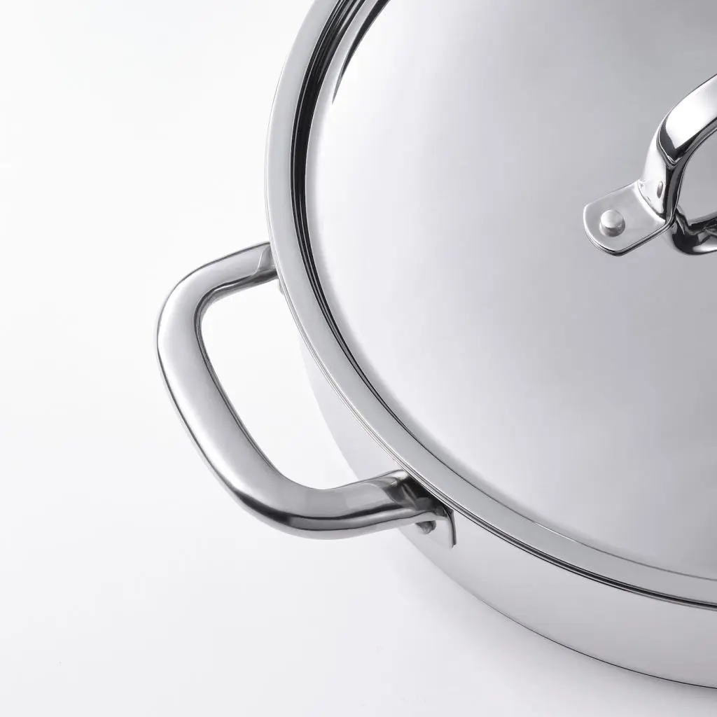 Подходит для всех типов варочных панелей, включая индукционную.С закругленной внутренней поверхностью; легко помешивать или взбивать содержимое.Две ручки; удобно переносить сковороду и накладывать пищу.Нержавеющая сталь – прочный и простой в уходе материал.Трехслойная конструкция дна: слой алюминия между двумя слоями нержавеющей стали. Обеспечивает равномерное нагревание, поэтому пища не пригорает и не прилипает к поверхности.Вы можете готовить при небольшом уровне нагрева и экономить энергию, так как нержавеющая сталь хорошо нагревается и долго удерживает тепло.Благодаря отверстию на ручке удобно вешать.Эту кастрюлю с крышкой можно использовать на плите и в духовке, а потом подать готовое блюдо на стол.Благодаря отверстию для вентиляции давление снижается и содержимое не выкипает.Использование крышки обеспечивает быстрое закипание, что сокращает время приготовления и расход энергии.Посуда полностью изготовлена из металла, поэтому ее можно также использовать в духовке.Для создания антипригарной поверхности этого товара не используется ПФОК (перфтороктановая кислота).Дизайнер