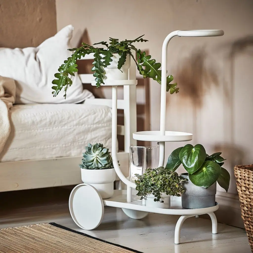 Позволяет разместить комнатные растения в любой части дома.Поставка с полочками на разных уровнях позволит продемонстрировать красоту каждого растения и оживить интерьер.Легко передвигать благодаря колесикам.Рекомендуется использовать только в помещении.Дизайнер
