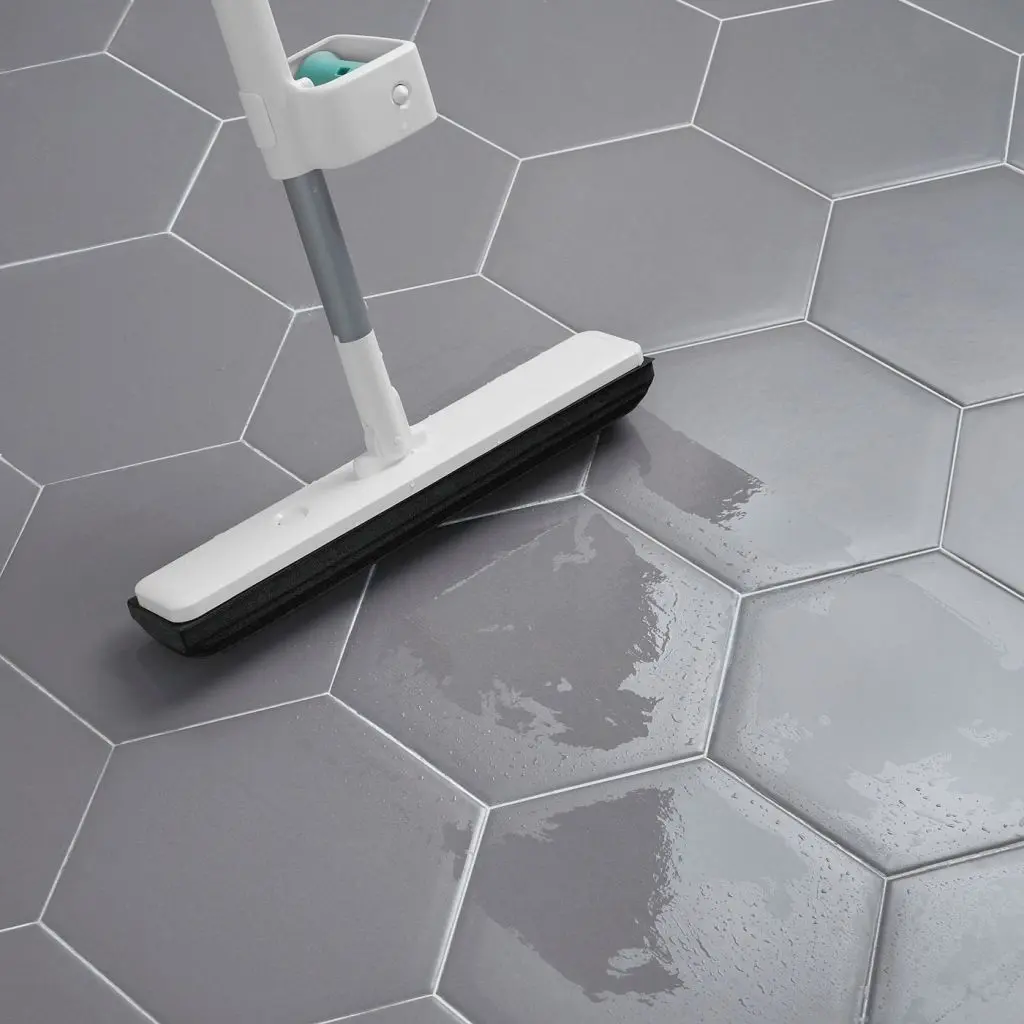 Плотная губка превосходно впитывает влагу и очищает поверхность. Воду легко отжать нажатием на рычаг. После отжима губка остается сухой.