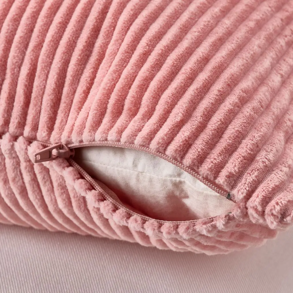 Вельветовая ткань приглушенного розового цвета подойдет к интерьеру любого стиля. Отличное решение, чтобы добавить мягкости дивану или кровати. Сочетается с другими подушками.