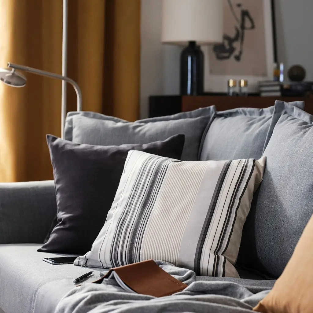 Классическая полоска в серо-бежевых тонах подойдет для любого интерьера и будет прекрасно сочетаться с другими цветами и орнаментами. Обожаете орнамент в полоску? Дополните этот чехол разноцветным полосатым чехлом СОЛМОТТ.