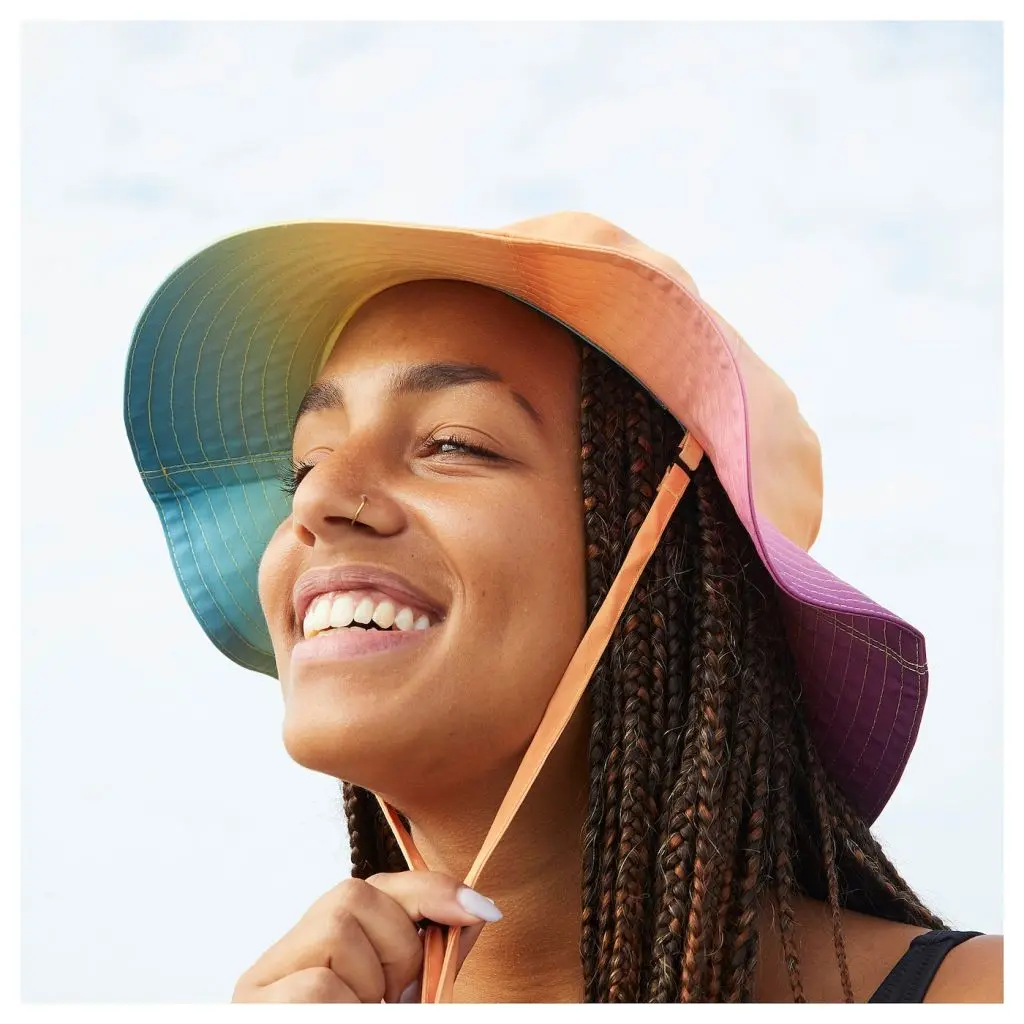 Эта разноцветная шляпа будет защищать голову, лицо и шею от солнечных лучей. Идеальный вариант для пляжа или похода. Даже если шляпа упадет в воду, ткань очень быстро высохнет.
