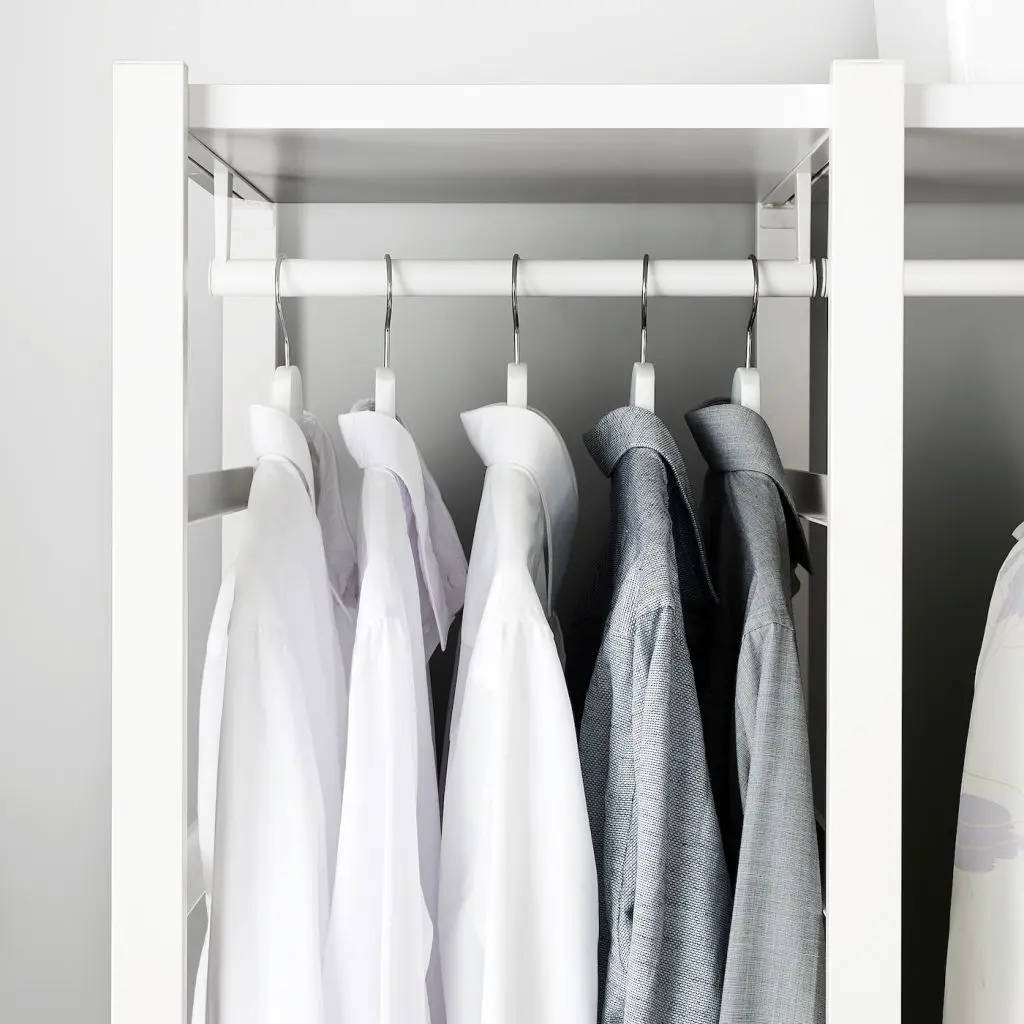 Одна платяная штанга 40 см вмещает приблизительно 10–12 рубашек на плечиках.Мебель необходимо крепить к стене.Для разных стен требуются различные крепежные приспособления. Подберите подходящие для ваших стен шурупы, дюбели, саморезы и т. п. (не прилагаются).Для сборки этой мебели требуются два человека.Дизайнер