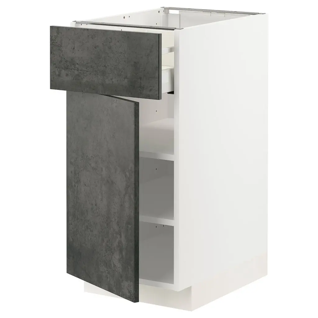 Код кухонного шкафа ME/MA 475Благодаря доводчику ящики закрываются плавно, мягко и бесшумно.Ящики выдвигаются полностью, что обеспечивает удобный обзор и доступ к содержимому.Ящики с плавным ходом и стопором.Самозакрывающиеся ящики.Каркас имеет устойчивую конструкцию благодаря стенкам из ДСП толщиной 18 мм.Для разных стен требуются различные крепежные приспособления. Подберите подходящие для ваших стен шурупы, дюбели, саморезы и т. п. (не прилагаются).Ножки и цоколи продаются отдельно.Можно дополнить ручкой.Дизайнер