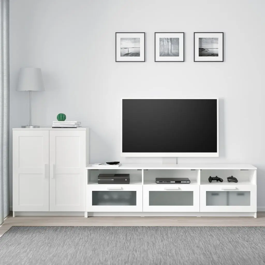 В больших ящиках этой тумбы удобно хранить пульты дистанционного управления, игровые приставки и другие ТВ-аксессуары.Съемные полки позволяют регулировать внутреннее пространство в соответствии с потребностями хранения.Отверстия для проводов на задней панели. Провода не на виду, но всегда под рукой.Шкаф-витрина позволяет продемонстрировать ваши бокалы и любимые безделушки, защищая их от пыли.Дополните шкаф-витрину подсветкой, которая не только обеспечит освещение содержимого, но и создаст в комнате уютную располагающую атмосферу.Эту мебель необходимо крепить к стене с помощью прилагаемого стенного крепежа.Для разных стен требуются различные крепежные приспособления. Подберите подходящие для ваших стен шурупы, дюбели, саморезы и т. п. (не прилагаются).Комбинируется с другой мебелью серии БРИМНЭС.Дизайнер