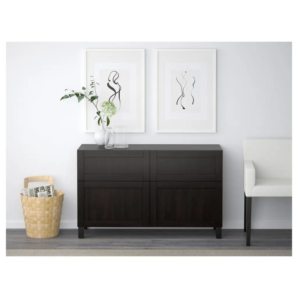 Благодаря доводчикам ящики закрываются плавно и бесшумно.Два ящика и полки за дверцами обеспечат достаточно места для хранения.Съемные полки позволяют регулировать пространство.Ножки придают комбинации БЕСТО более легкий вид, поднимая модули на полом. Кроме того, это упрощает уборку.Эту мебель необходимо крепить к стене с помощью прилагаемого стенного крепежа.Для разных стен требуются различные крепежные приспособления. Подберите подходящие для ваших стен шурупы, дюбели, саморезы и т. п. (не прилагаются).Внутренние элементы для организации хранения в модулях БЕСТО продаются отдельно.Если вы выберете функцию плавного закрывания, рекомендуем дополнить фасады ручками, чтобы открывать ящики/шкафы было удобнее.Дизайнер