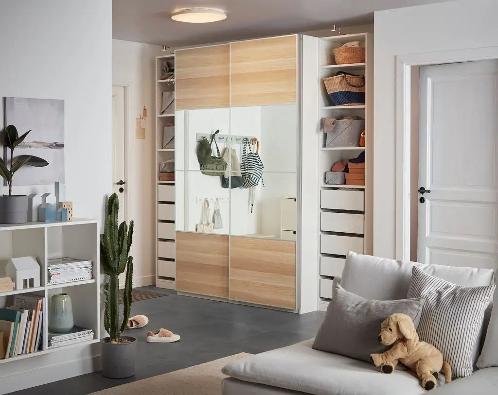 Бесплатно 10 лет гарантии. Подробнее об условиях гарантии – в гарантийной брошюре.Эту комбинацию ПАКС/КОМПЛИМЕНТ можно адаптировать в соответствии с вашими потребностями, воспользовавшись программой для проектирования гардеробов ПАКС.Регулируемые ножки позволяют скорректировать неровности пола.Раздвижные дверцы не требуют места при открывании.Устройство обеспечивает плавное и бесшумное открывание и закрывание дверей.С помощью программы планирования гардероба ПАКС вы можете легко дополнить свою комбинацию интегрированной подсветкой. После выбора источника освещения программа предложит необходимые аксессуары.Переверните панели, чтобы изменить внешний вид гардероба. Каждая сторона имеет свою отделку. Используйте один вариант отделки или сочетайте оба в одном решении.Для раздвижных дверей не нужны ручки, что придает дизайну гардероба лаконичный облик, позволяя сочетать его с мебелью в разных стилях.Эту мебель необходимо крепить к стене с помощью прилагаемого стенного крепежа.Для разных стен требуются различные крепежные приспособления. Подберите подходящие для ваших стен шурупы, дюбели, саморезы и т. п. (не прилагаются).Для сборки этой мебели требуются два человека.Требуемая мин. высота потолка: 244 см. Следуйте инструкциям по сборке в упаковке.Аксессуары для организации хранения в гардеробе продаются отдельно.На платяную штангу можно повесить примерно 30 рубашек на плечиках.Дизайнер