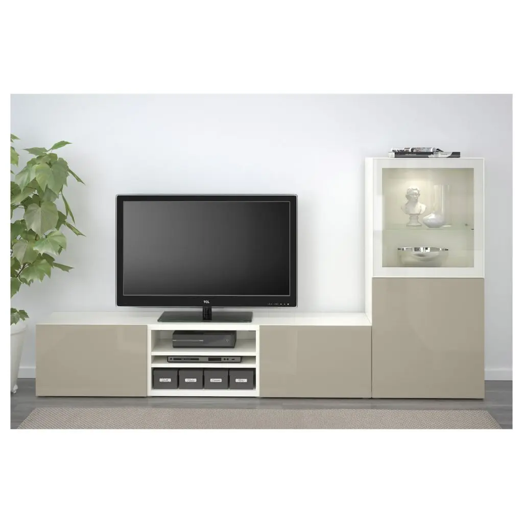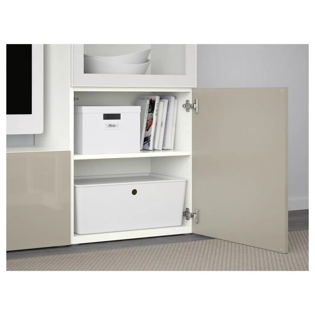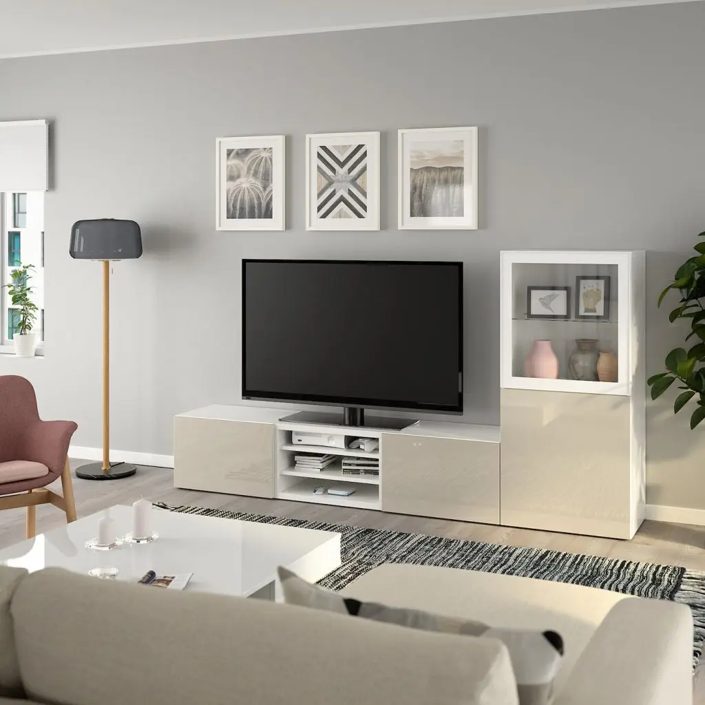 Благодаря доводчикам ящики закрываются плавно и бесшумно.Благодаря нескольким отверстиям на задней панели тумбы под ТВ провода от телевизора и других устройств всегда будут под рукой, но не на виду.Два ящика и полки за дверцами обеспечат достаточно места для хранения.Съемные полки позволяют регулировать пространство.Специальное отверстие в верхней панели обеспечит удобное и компактное размещение проводов.Эту мебель необходимо крепить к стене с помощью прилагаемого стенного крепежа.Будьте осторожны при обращении с закаленным стеклом! Из-за поврежденных краев и царапин на поверхности стекло может внезапно разбиться.Макс. нагрузка на верхнюю панель этой тумбы под ТВ: 50 кг.Для разных стен требуются различные крепежные приспособления. Подберите подходящие для ваших стен шурупы, дюбели, саморезы и т. п. (не прилагаются).Максимальная нагрузка на закрепленный на стене модуль зависит от материала стены.Внутренние элементы для организации хранения в модулях БЕСТО продаются отдельно.Если вы выберете функцию плавного закрывания, рекомендуем дополнить фасады ручками, чтобы открывать ящики/шкафы было удобнее.Дизайнер