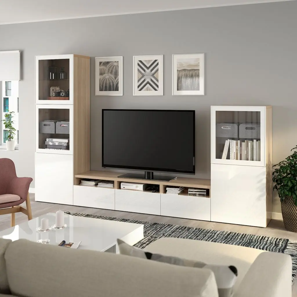 Благодаря нескольким отверстиям на задней панели тумбы под ТВ провода от телевизора и других устройств всегда будут под рукой, но не на виду.Специальное отверстие в верхней панели обеспечит удобное и компактное размещение проводов.Ящики со встроенным нажимным механизмом открываются легким нажатием.Ящики обеспечат более упорядоченное хранение ваших вещей. А полки за дверцами предоставят еще больше места.Съемные полки позволяют регулировать пространство.Организуйте и оптимизируйте систему для хранения БЕСТО, используя подходящие коробки и вставки.Эту мебель необходимо крепить к стене с помощью прилагаемого стенного крепежа.Будьте осторожны при обращении с закаленным стеклом! Из-за поврежденных краев и царапин на поверхности стекло может внезапно разбиться.Для функционирования нажимного механизма необходимо пространство между каркасом и фронтальной панелью ящика, чтобы ящик открывался нажатием. Небольшой зазор необходим для обеспечения этой функции и не является недостатком товара.Чтобы создать единый интерьер во всем доме, фасады СЕЛЬСВИКЕН можно комбинировать с подходящими дверями ФАРДАЛЬ для гардероба ПАКС.