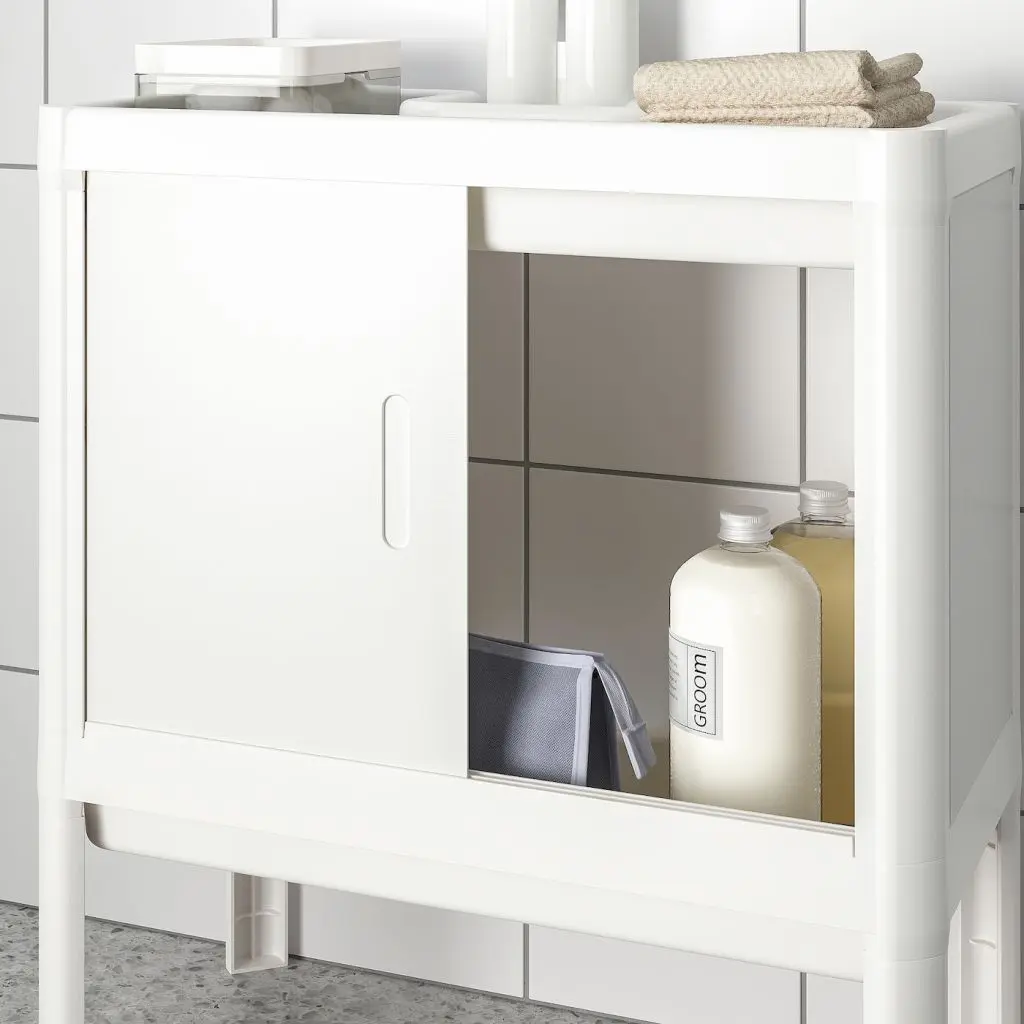 Отличное решение для небольшой ванной комнаты. Шкаф под раковину занимает немного места, при этом в нем можно хранить все необходимое — от косметических средств до полотенец.
