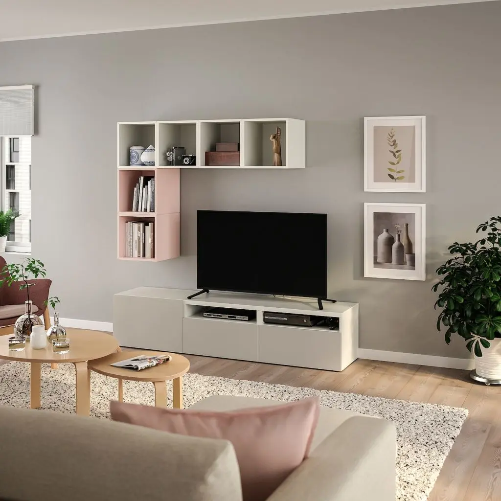 Тумба для телевизора БЕСТО может использоваться для телевизора и всех необходимых гаджетов. Открытые полки продемонстрируют ваши любимые вещи, а в закрытых вы сможете спрятать то, что хотите скрыть от посторонних глаз.