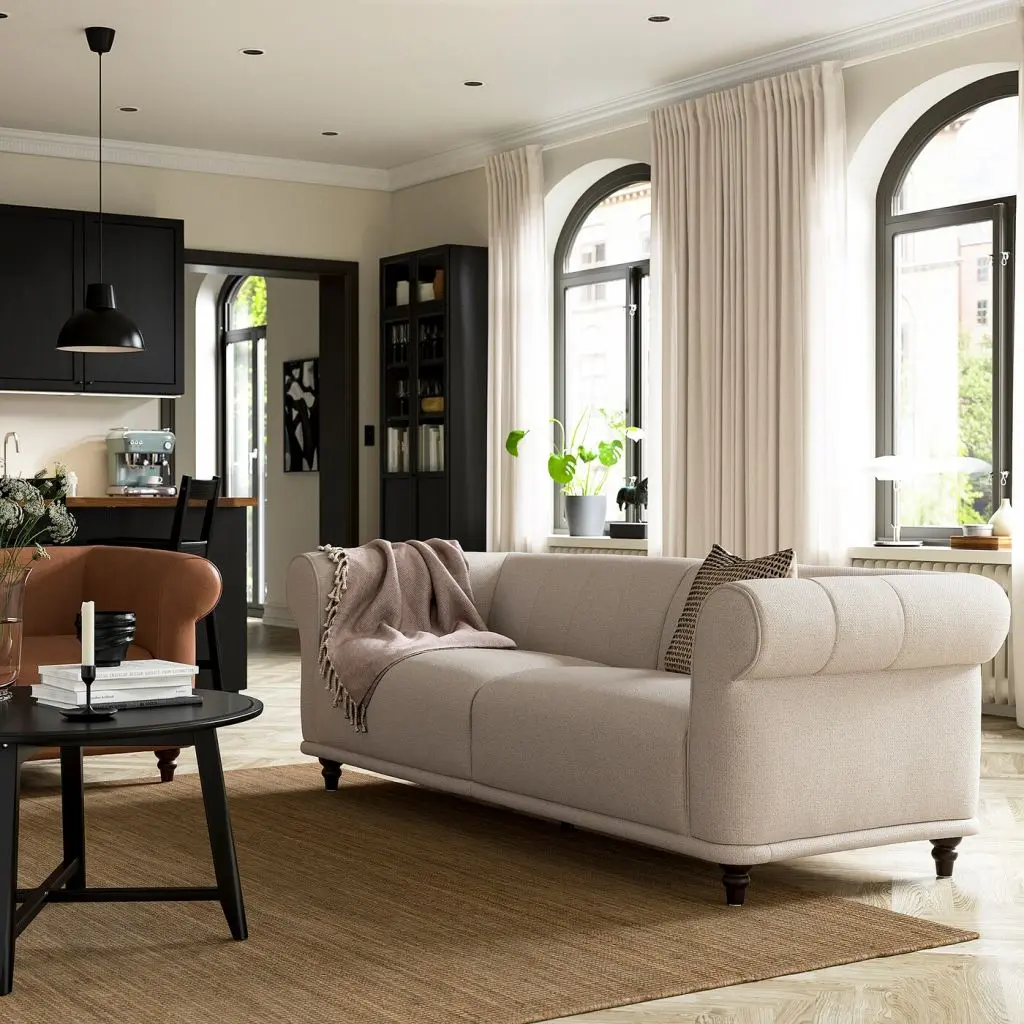 Диван ВИСКАФОРС станет ярким украшением вашей комнаты. Этот массивный предмет мебели в классическом стиле будто обнимает вас, когда вы погружаетесь в его глубокое, мягкое сиденье.