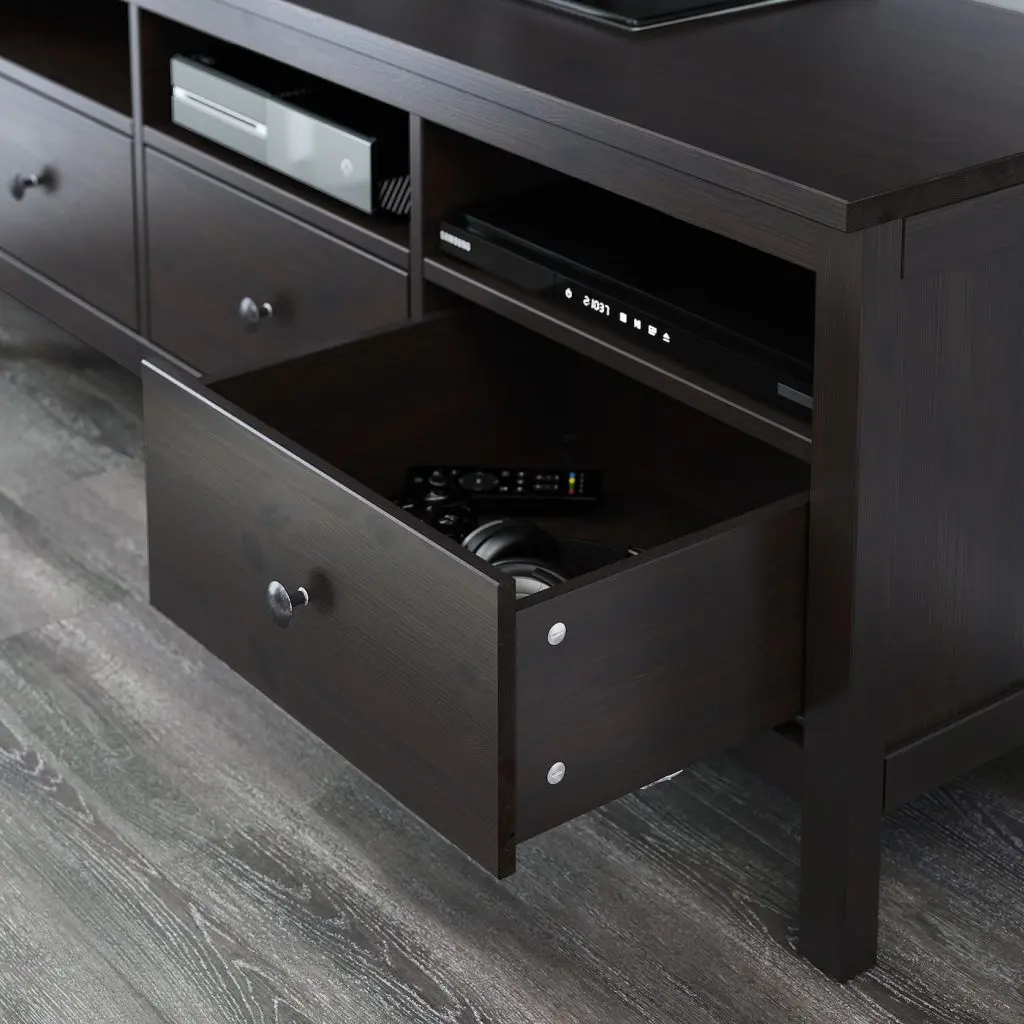 Массив дерева.Открытые отделения для DVD-плеера и т.п.Большие ящики обеспечат удобное хранение аксессуаров и порядок.Ручки прилагаются.Комбинируется с другой мебелью из серии ХЕМНЭС.Стоящая на полу тумба под ТВ должна быть закреплена к стене с помощью прилагающего стенного крепежа.Для разных стен требуются различные крепежные приспособления. Подберите подходящие для ваших стен шурупы, дюбели, саморезы и т. п. (не прилагаются).Дизайнер