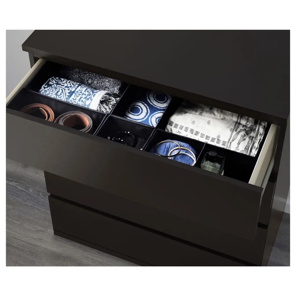 Ваш дом должен быть абсолютно безопасен для всей семьи. Именно поэтому крепеж безопасности для фиксации комода к стене прилагается.Благодаря отделке из шпона дерева этот комод с годами будет выглядеть только лучше.Чтобы ящики не выпадали при открывании, они оснащены специальным стопором.ВНИМАНИЕ! ОПАСНОСТЬ ОПРОКИДЫВАНИЯ! Незакрепленная мебель может опрокинуться. Эту мебель необходимо крепить к стене с помощью прилагаемого крепежа для предотвращения опрокидывания.Для различных материалов стен требуются различные крепежные средства. Используйте крепежные средства, подходящие для материала стен в вашем доме.В ящик можно положить примерно 15 пар брюк или 30 футболок.Дизайнер