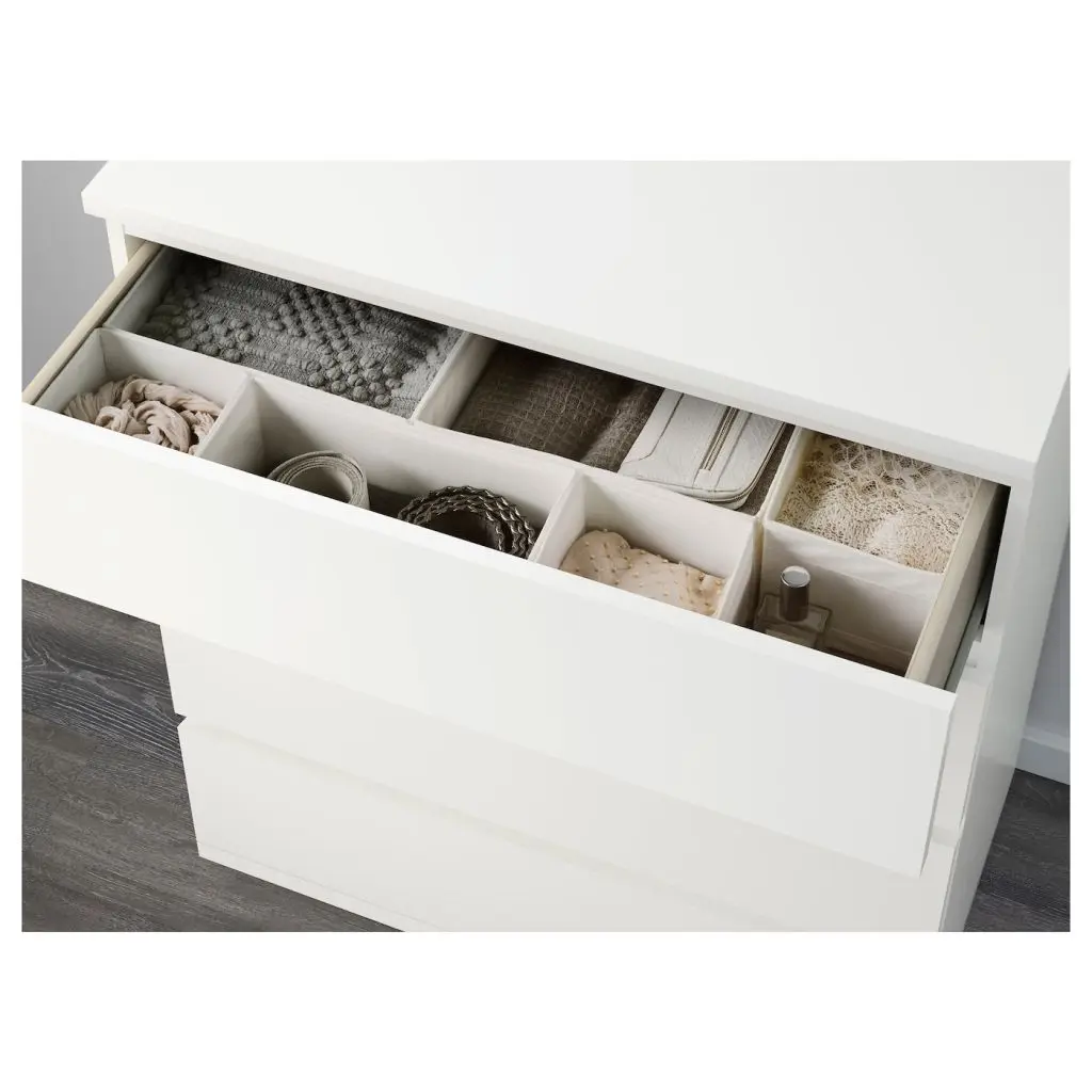 Ваш дом должен быть абсолютно безопасен для всей семьи. Именно поэтому крепеж безопасности для фиксации комода к стене прилагается.Чтобы ящики не выпадали при открывании, они оснащены специальным стопором.ВНИМАНИЕ! ОПАСНОСТЬ ОПРОКИДЫВАНИЯ! Незакрепленная мебель может опрокинуться. Эту мебель необходимо крепить к стене с помощью прилагаемого крепежа для предотвращения опрокидывания.Для различных материалов стен требуются различные крепежные средства. Используйте крепежные средства, подходящие для материала стен в вашем доме.В ящик можно положить примерно 15 пар брюк или 30 футболок.Дизайнер