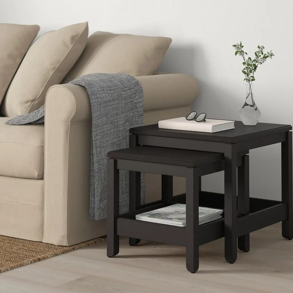 Столики ХАВСТА из массива сосны с проработанными деталями и брашированной поверхностью подчеркнут уютную атмосферу вашего дома. Столики можно поставить по отдельности или один под другой для экономии места.