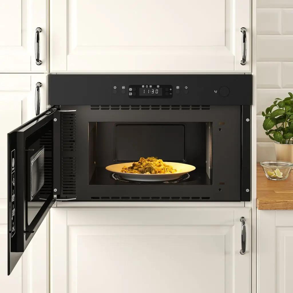 Бесплатно 5 лет гарантии. Подробнее об условиях гарантии – в гарантийной брошюре.Функция быстрого подогрева на полной мощности; идеально подходит для подогрева напитков.Для приготовления полезных овощных и рыб используйте функцию приготовления на пару и прилагающие аксессуары.СВЧ с функцией автоматической разморозки определяет время, необходимое для размораживания продукта. Все, что вам нужно сделать, — это указать вес размораживаемого продукта.Дверцы без ручек придают интерьеру стильный облик; открываются нажатием.Легко установить на удобной высоте в навесном или высоком шкафу.Этот товар имеет маркировку CE.Выходная мощность микроволн: 750 Вт.Объем: 22 литра.Напряжение: 230 В.Предохранитель – минимум 10 А.Вращающаяся поворотная тарелка диаметром 25 см.4 уровня мощности.Электронный дисплей с белыми цифрами.1 набор для приготовления пищи на пару прилагается.Шнур питания с вилкой прилагается.Дизайнер