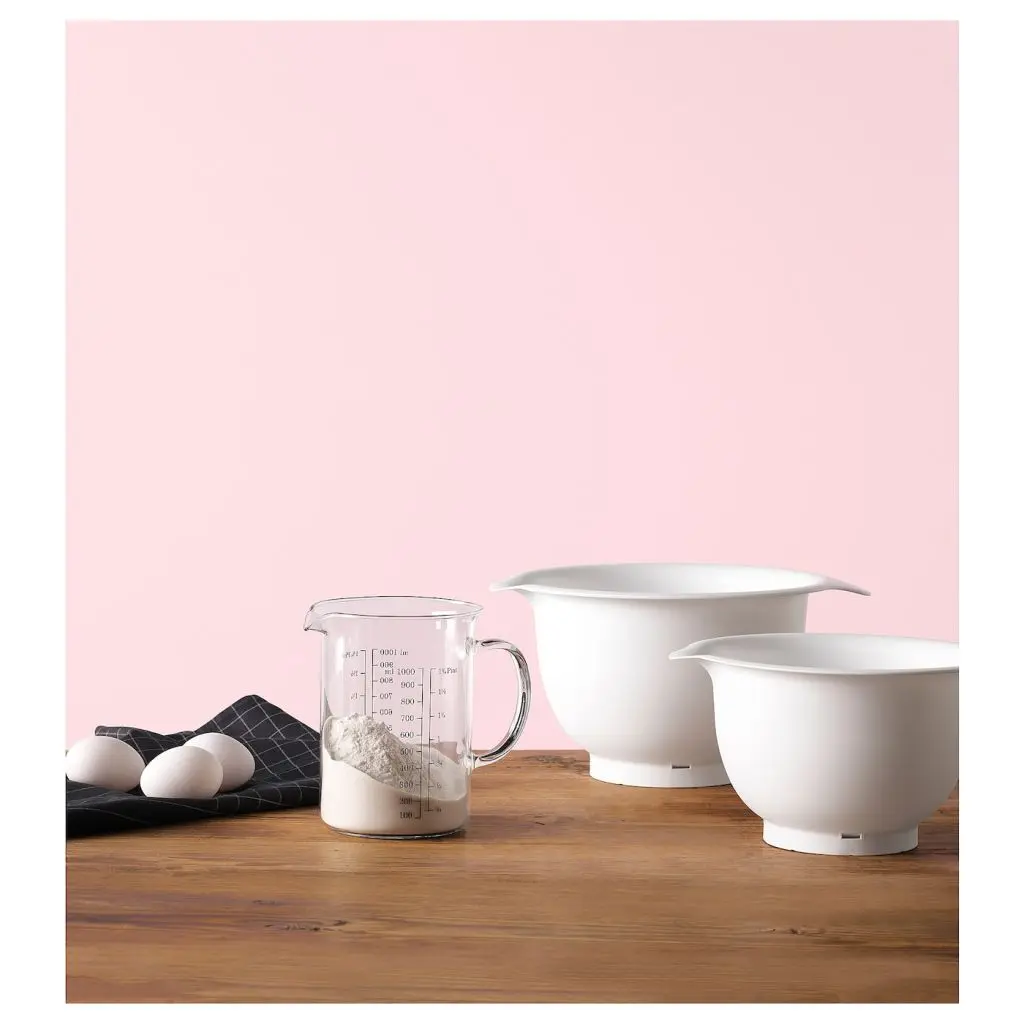 Резиновое кольцо в дне миски обеспечивает ее устойчивость в процессе использования.Размеры: 2,3 л (диам. 22 см) и 3,7 л (диам. 26 см). Вымойте изделие перед первым использованием.Дизайнер