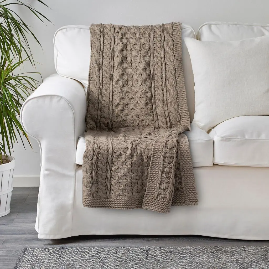 Структура вязки придает пледу мягкость и эластичность.Плед из акрила такой же мягкий теплый и уютный, как и шерстяной. При этом он очень прост в уходе: сохраняет первоначальную форму и быстро сохнет после стирки.Можно стирать в машине.Трикотаж.