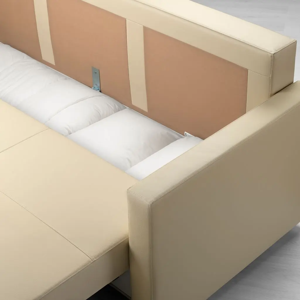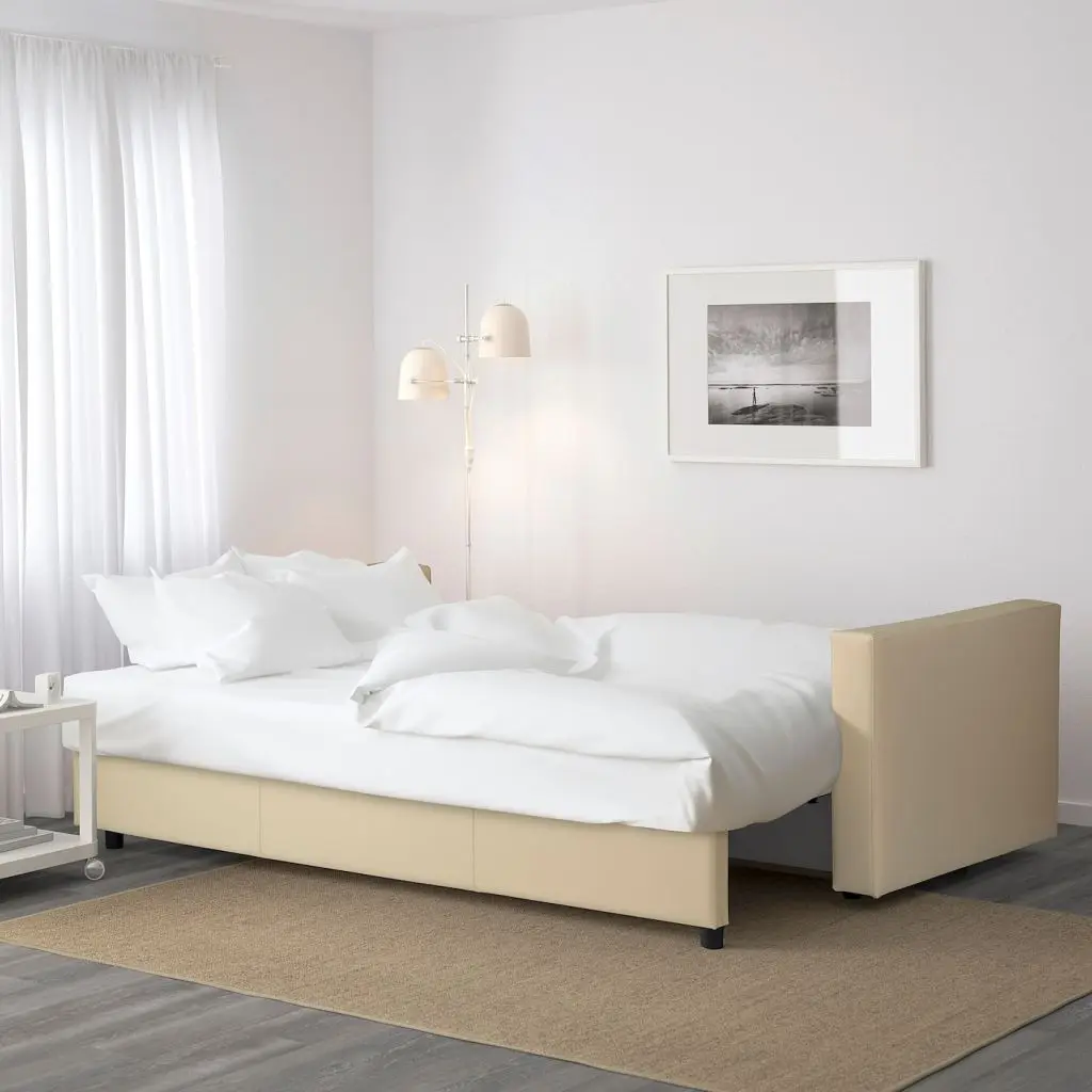 Диван легко и быстро раскладывается, не повреждая пол и не сминая ковер.Большое практичное отделение для хранения под сиденьем.Обивка БУМСТАД — это прочная ткань, которая по виду и на ощупь не отличима от кожи. Ткань изготовлена из смеси хлопка и полиэстера и защищена специальным полиуретановым покрытием.Дизайнер