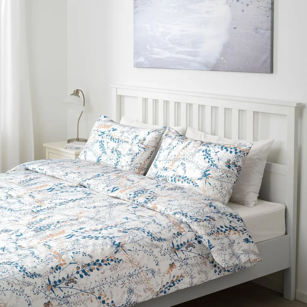 Пододеяльник с потайной застежкой — одеяло не выбивается.100 % хлопок — прочный натуральный материал.В комплект входит: простыня 220×240 см, 2 наволочки 50×70 см и пододеяльник 200×200 см.Количество нитей на кв. дюйм: 132.Чем выше количество нитей на квадратный дюйм, тем прочнее и плотнее ткань.Имеются разные размеры.
