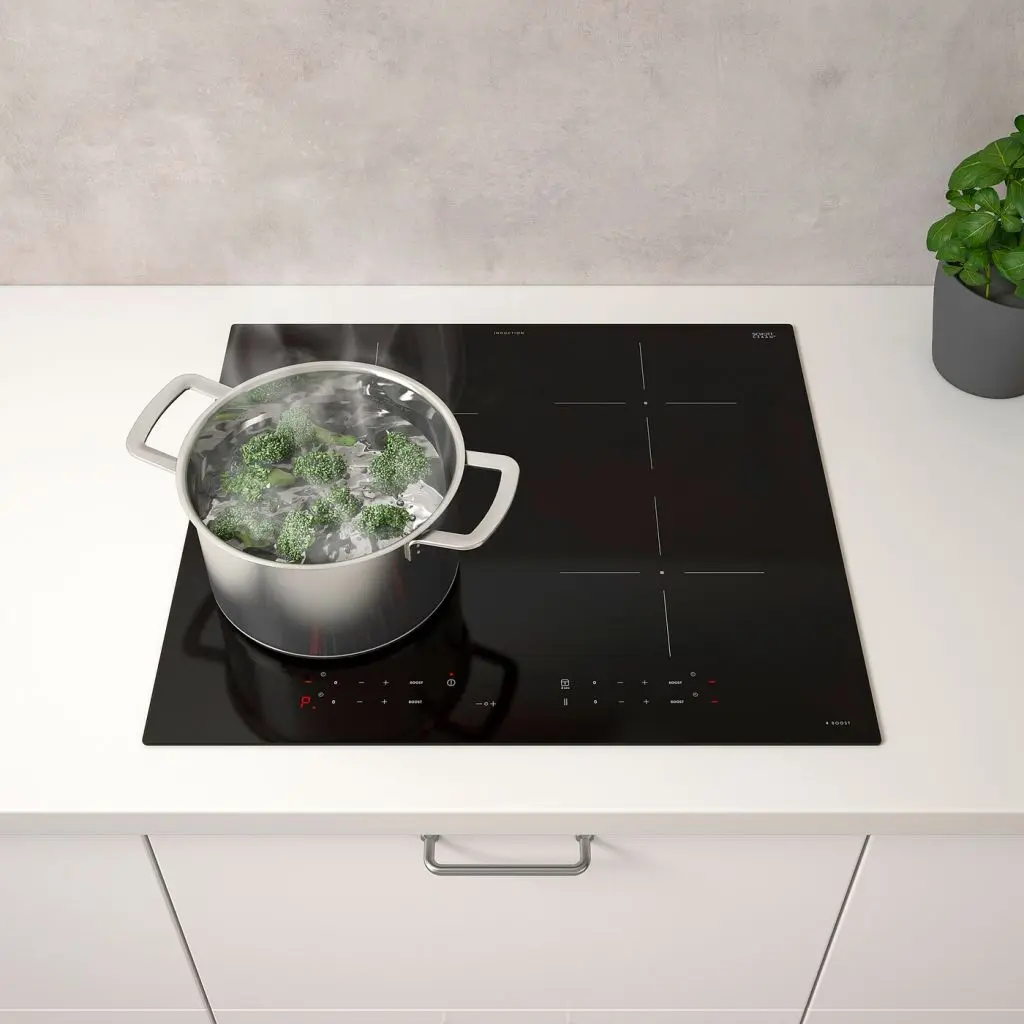 У этой индукционной варочной панели есть все базовые функции и 4 зоны с ускорителем. Это особенно удобно, чтобы быстро вскипятить воду или приготовить блюдо в воке. Есть замок для безопасности детей.