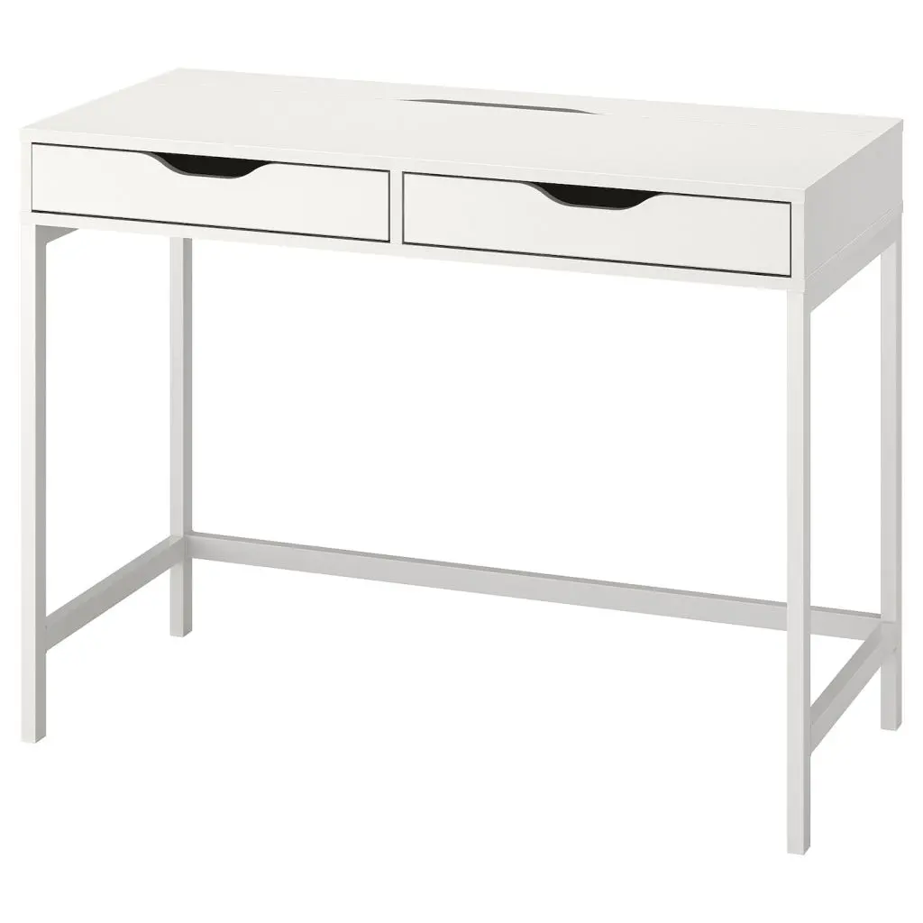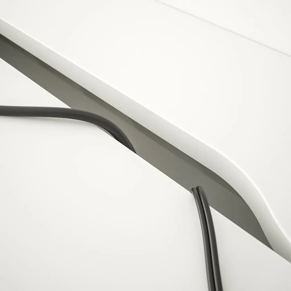 Идеальное сочетание лаконичного дизайна и практичных деталей, например отделение для проводов и вместительные ящики. Одинаковая отделка со всех сторон позволяет ставить стол не только к стене, но в и центр комнаты.