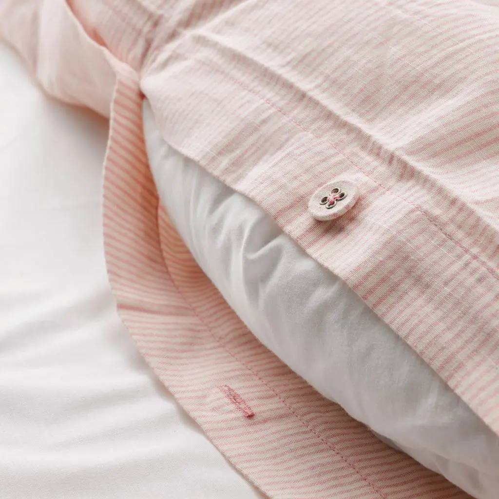 Благодаря декоративным, обтянутым тканью пуговицам на пододеяльнике одеяло не будет выбиваться.
