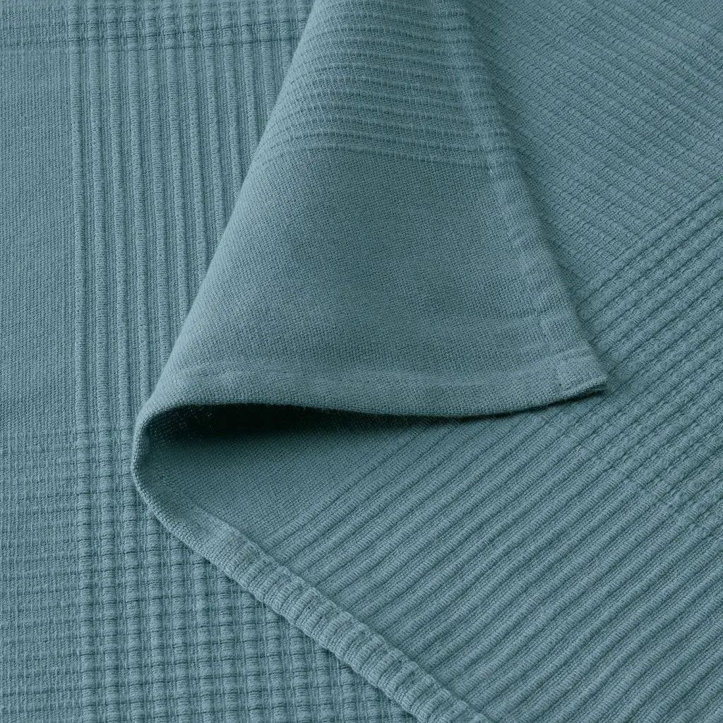 Это покрывало приятного оттенка синего позволит вам с легкостью освежить интерьер спальни. Его можно также использовать как дополнительное одеяло. Мягкая ткань из хлопка обеспечит тепло и уют.