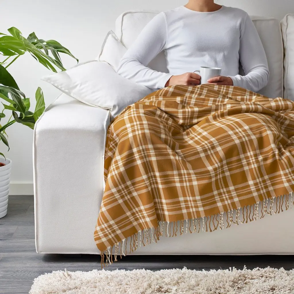 Шерсть обладает устойчивостью к появлению пятен. Этот износостойкий материал отлично сохраняет тепло.Можно уютно укутаться лежа на диване или накинуть на себя, когда прохладно.