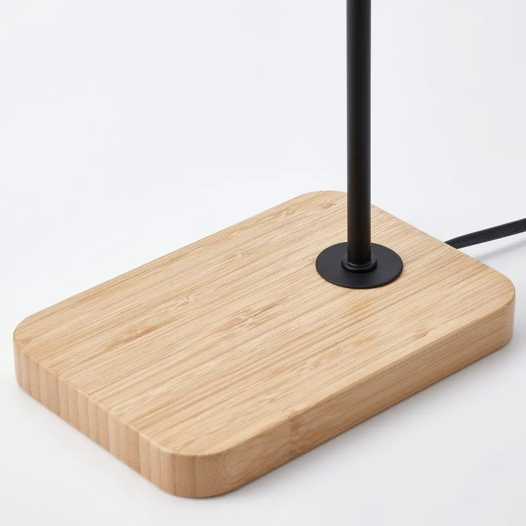 Красота — в простоте. Штатив этой настольной лампы, напоминающий обычную металлическую арматуру, контрастирует с основанием из натурального бамбука. Для завершения образа светильник можно дополнить декоративной лампочкой.