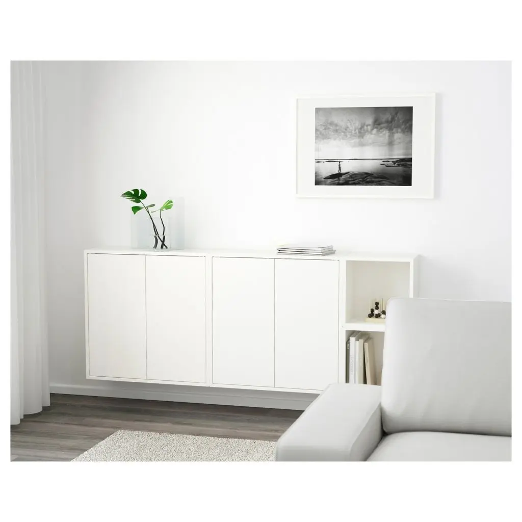 Комбинируйте открытое и закрытое хранение в зависимости от потребностей.Дверца со встроенным нажимным механизмом открывается легким нажатием.4 съемные полки позволяют адаптировать пространство в соответствии с потребностями хранения, одна несъемная полка обеспечивает устойчивость.Накладные шины ЭКЕТ для фиксации к стене прилагаются.Для разных стен требуются различные крепежные приспособления. Подберите подходящие для ваших стен шурупы, дюбели, саморезы и т. п. (не прилагаются).Максимальная нагрузка на подвесной шкаф зависит от материала стены.Дизайнер