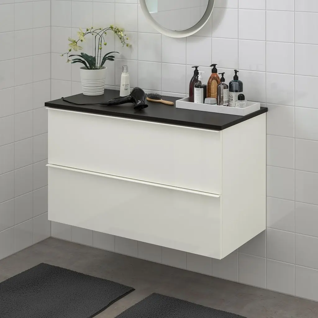Отличное соотношение цены и качества и гарантия на срок не менее 10 лет ежедневного использования. Ознакомьтесь с условиями в гарантийной брошюре.Матовая поверхность шкафа под раковину создает располагающую атмосферу.Ножки ГОДМОРГОН продаются отдельно.Ручки прилагаются.Ламинат чувствителен к воздействию едких химикатов, например средств для удаления накипи, хлора и ацетона. При попадании таких средств на ламинат их необходимо сразу удалить. Для ухода можно использовать обычные моющие средства.Убедитесь, что материалы, из которых сделаны стены ванной комнаты, выдержат вес мебели. Если у вас возникли сомнения по поводу установки, обратитесь к специалисту. Для разных стен требуются различные шурупы, дюбели, саморезы и т. п. (не прилагаются).Эту мебель необходимо крепить к стене с помощью прилагаемого стенного крепежа.Если вы сомневаетесь в прочности стен в ванной, мы рекомендуем использовать ножки.Если вы сомневаетесь в прочности стен в ванной, мы рекомендуем использовать ножки.Дизайнер