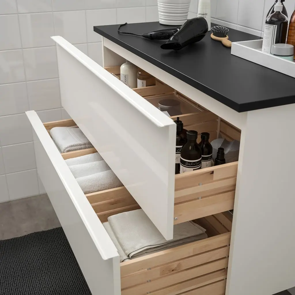 Нижняя часть ящика:ДСП, Меламиновая пленка, Пластмасса АБС