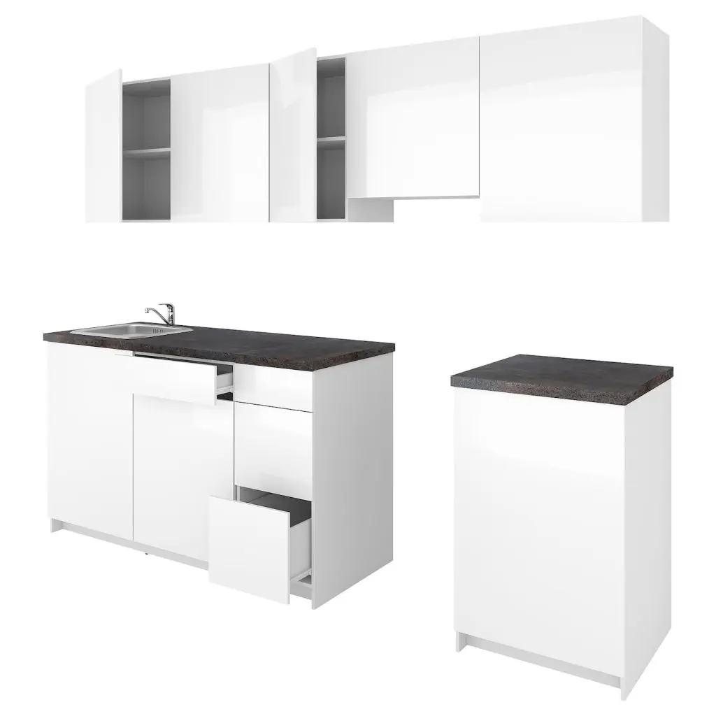 Вы можете выбрать готовую комбинацию или создать индивидуальное решение, комбинируя модули КНОКСХУЛЬТ.Отличное бюджетное решение для кухни среднего размера с отдельно стоящей плитой.Удобно хранить кухонную и столовую посуду, так как в комбинации есть модули с ящиками и полками.Пространство стены используется эффективно благодаря дополнительному месту для хранения в шкафу над вытяжкой.Выберите отдельно стоящую плиту и встраиваемую вытяжку и дополните мебель понравившимися ручками, чтобы придать решению более индивидуальный вид.Меламиновая поверхность фасадов и каркасов проста в уходе и устойчива к появлению царапин.Устойчивая к воздействию влаги, тепла и появлению царапин ламинированная столешница проста в уходе.Дверцы легко установить благодаря регулируемым по высоте, глубине и ширине петлям.Дверцы можно установить справа или слева.Регулируемые ножки обеспечивают устойчивость даже на неровном полу.Включено: шкаф, дверцы, ящики, столешница, ножки, цоколь, полки, петли и крепления.Ручки продаются отдельно.Бытовая техника продается отдельно.Кухонный смеситель продается отдельно.Для разных стен требуются различные крепежные приспособления. Подберите подходящие для ваших стен шурупы, дюбели, саморезы и т. п. (не прилагаются).Чтобы сохранить ламинированную столешницу, никогда не режьте непосредственно на ее поверхности, пользуйтесь разделочной доской. Предметы с острыми краями могут повредить поверхность.Можно дополнить ковриком для ящика и поддонами, чтобы защитить поверхность от царапин, которые могут оставить тяжелые сковороды и кастрюли.