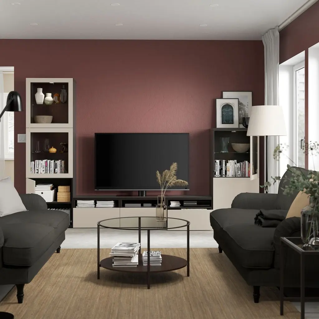 Тумба для телевизора БЕСТО может использоваться для телевизора и всех необходимых гаджетов. Открытые полки продемонстрируют ваши любимые вещи, а в закрытых вы сможете спрятать то, что хотите скрыть от посторонних глаз.