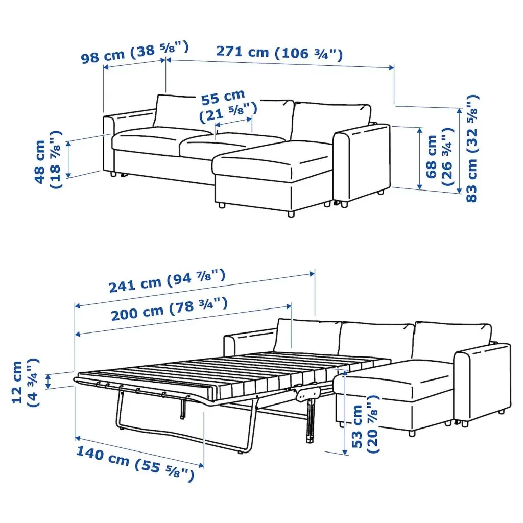 Секции дивана можно комбинировать разными способами, создавая спальное место удобного размера и формы. Если вам потребуется диван побольше, вы всегда можете добавить одну или две секции.Вы можете создать свою собственную идеальную комбинацию с помощью планировщика. Собирайте, разбирайте и снова компануйте, пока не найдете лучший вариант.Уберите подушки сиденья и спинки, вытащите подрамник, и ваш диван быстро превратится в просторную, удобную кровать. Идеальное спальное место для вас или ваших гостей.Диван-кровать оснащен матрасом из высокоэластичного пенополиуретана толщиной 12 см. Матрас обеспечивает поддержку тела и гладкую поверхность без стыков.Благодаря съемному чехлу, который можно стирать в машине, матрас легко содержать в чистоте.Подушки можно использовать для поддержки спины, лежа в кровати.Козетка с отделением для хранения под сиденьем. Крышка автоматически фиксируется в отрытом положении, чтобы вы могли легко достать или убрать нужные вещи.Козетку можно поставить справа или слева от дивана – комбинацию легко изменить.Можно дополнить подголовником ВИМЛЕ, чтобы сделать спинку дивана выше и обеспечить комфортную опору для шеи.Для контактных поверхностей использована мягкая, гладкая и прочная кожаная обивка ГРАНН. Обивка БУМСТАД для остальных поверхностей изготовлена из ткани, которая по внешнему виду и на ощупь неотличима от натуральной кожи.Простой уход – достаточно протереть влажной тканью.Бесплатно 10 лет гарантии. Подробнее об условиях гарантии — в гарантийной брошюре.