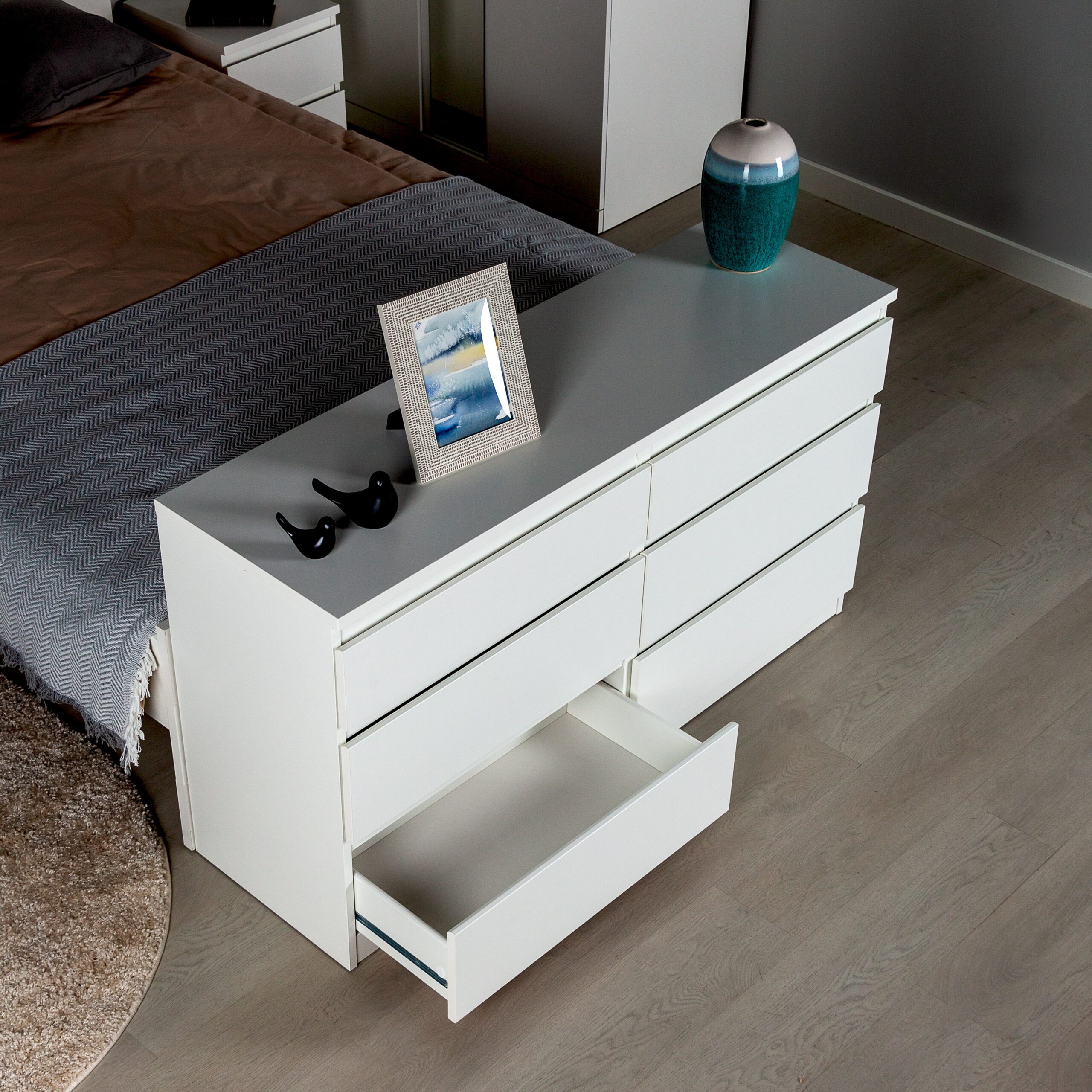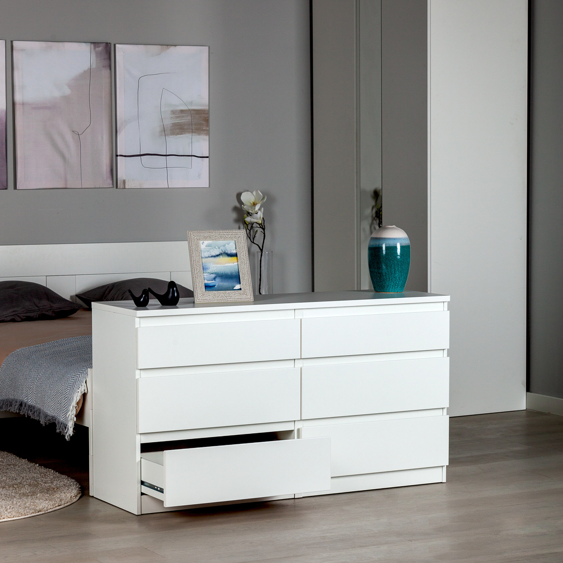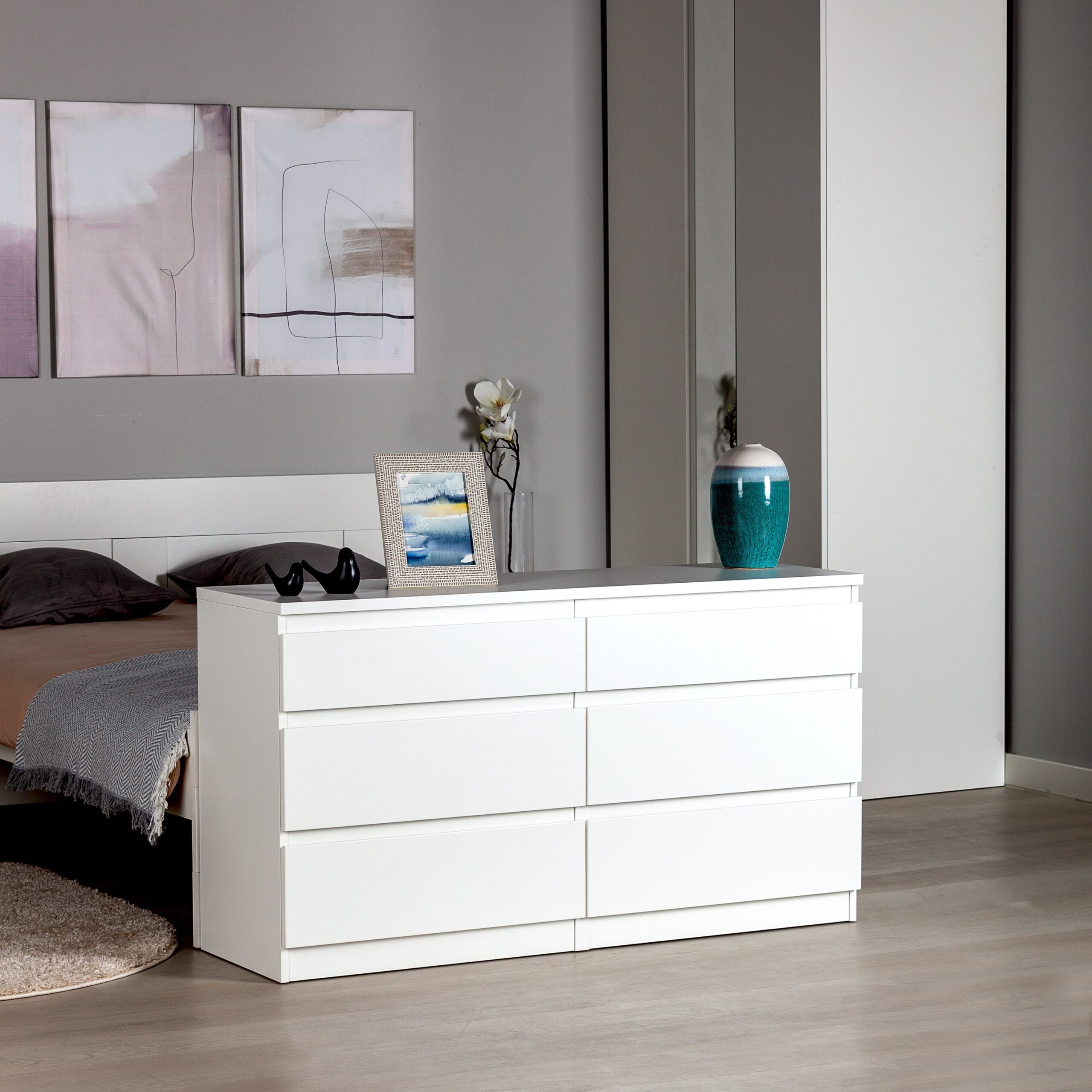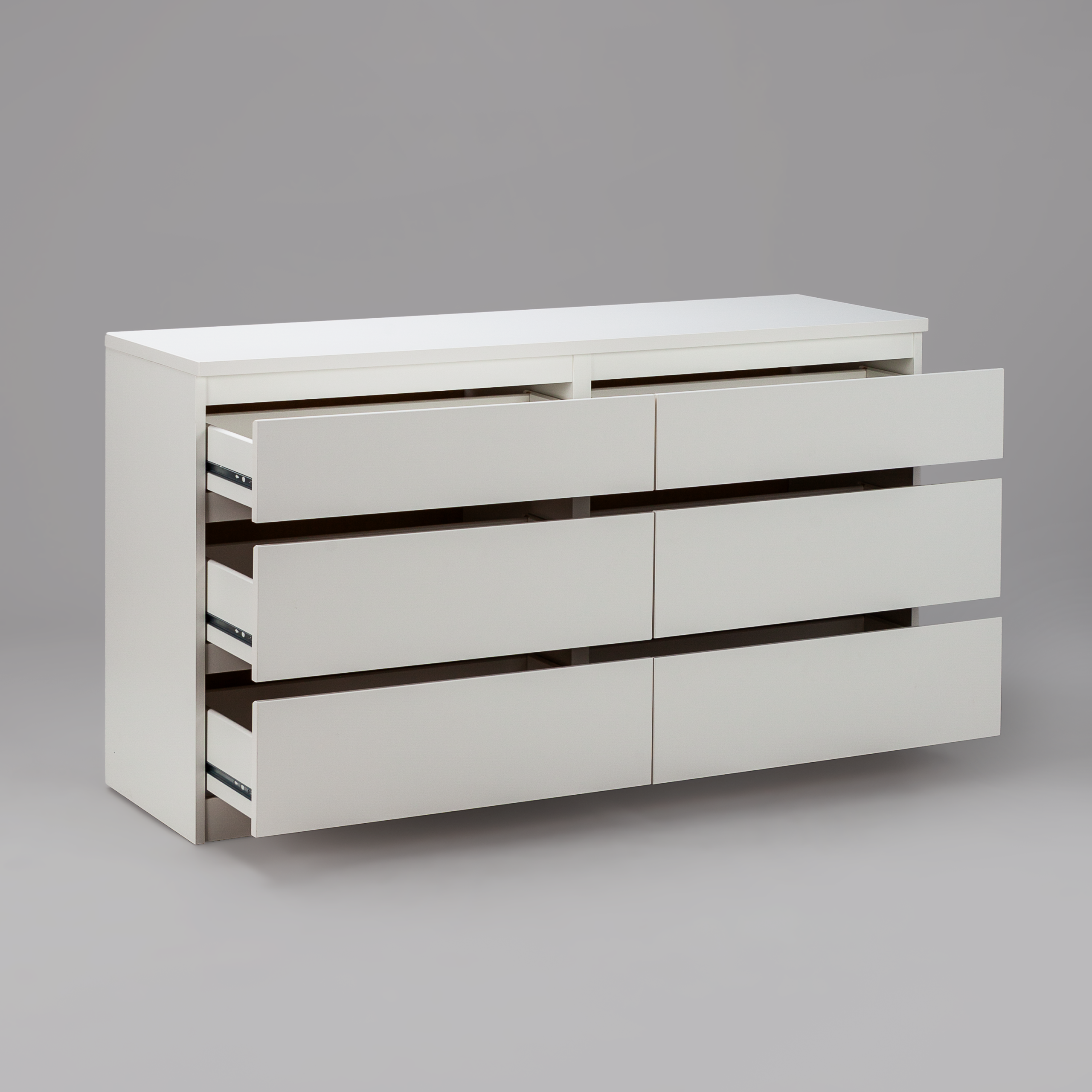 Комод КАСТОР с шестью наружными выдвижными ящиками, 1297х396х716, цвет Белый. Изготовлен из кашированного ДСП толщиной 16 мм. Крепится к стене. Гарантийный срок для жилых помещений 24 месяца, для общественных помещений — 18 месяцев.