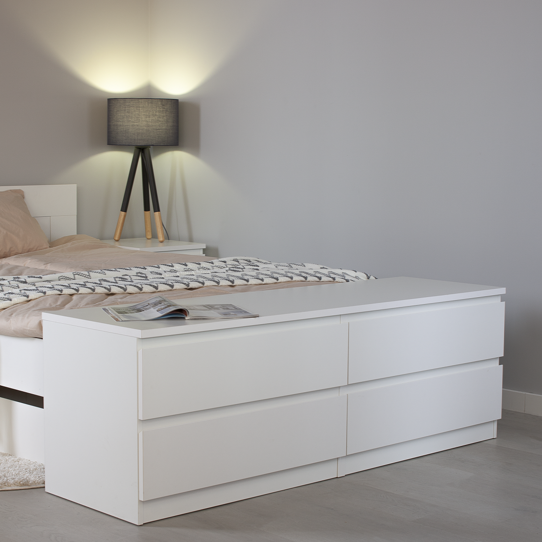 Комод МАЛЬТА низкий с четырьмя выдвижными ящиками, цвет белый