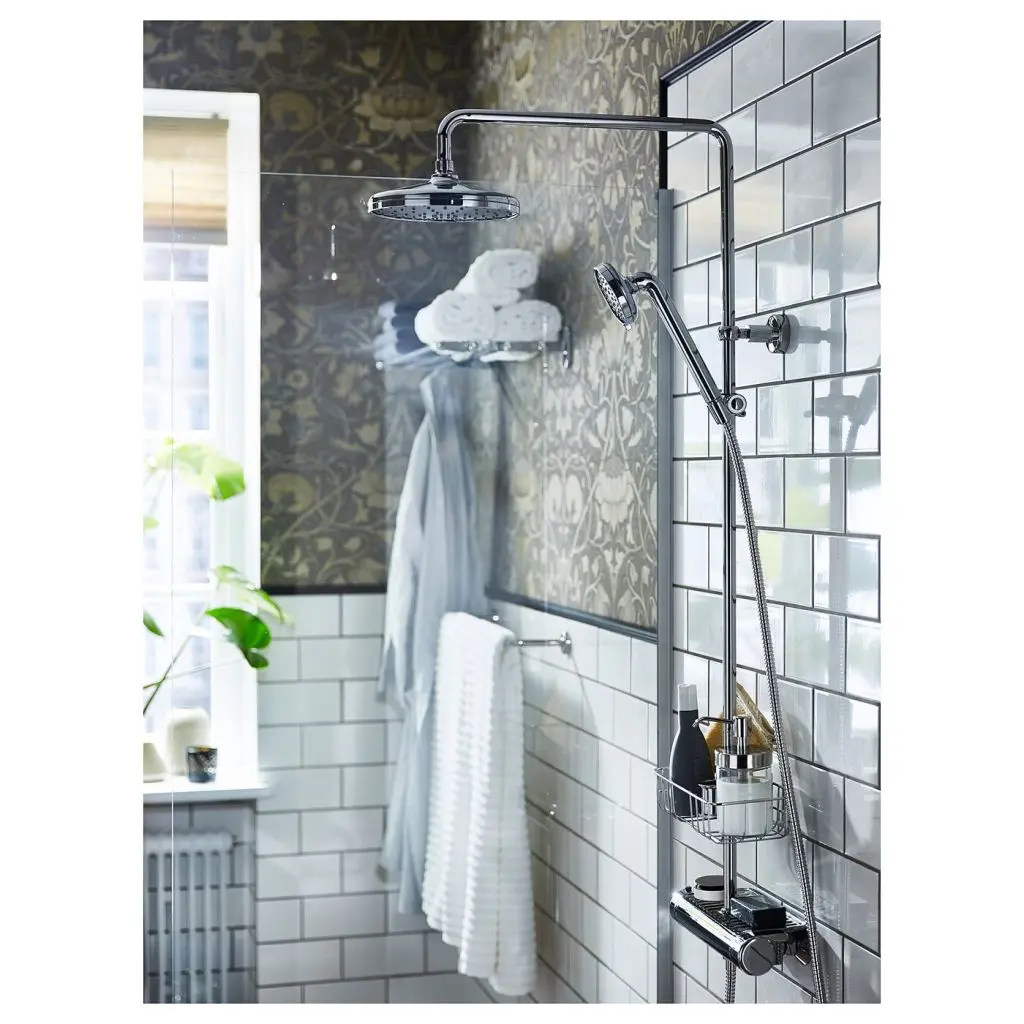 10 лет гарантии на смеситель и 3 года гарантии на другие компоненты. Подробнее об условиях гарантии в Гарантийной брошюре.Режим «сплошной поток» верхнего душа обеспечивает равномерное распределение воды и создает расслабляющее ощущение дождевых струй.Ручной душ с режимом «сплошной поток» обеспечивает равномерное распределение воды для максимального комфорта.Режим «рассеченная струя» обеспечивает более интенсивный напор воды, что позволит хорошо промыть густые волосы.Ручной душ легко установить на нужную высоту с помощью регулируемого держателя.Душевую сетку (резиновые дюзы) леек легко почистить механически.Cмеситель установлен на безопасное ограничение по температуре: 38 °C. Изменить установленное безопасное ограничение по температуре можно, нажав кнопку корректировки.Благодаря специальной технологии поверхность смесителя не нагревается, поэтому дотрагиваться до нее абсолютно безопасно.На интегрированную в смеситель полочку можно поставить шампунь и гель для душа, которым бывает так трудно найти удобное место.Вы можете выбрать режим «сплошной поток» или «рассеченная струя», а также режим, который для оптимального комфорта комбинирует две эти функции.Шайба для компенсации напора прилагается к верхнему душу/ручному душу.Стенные крепежи прилагаются.Регулятор напора потока прилагается.Верхняя душевая насадка со следующими режимы подачи воды: сплошной поток, рассеченная струя и сплошной поток/рассеченная струя.Раздельная регулировка напора и температуры воды.Вы можете изменить установленное безопасное ограничение по температуре, нажав кнопку корректировки.Фиксированное расстояние между центрами: 150 мм.Термостатический смеситель установлен на безопасное ограничение по температуре: 38 °C. Так как условия эксплуатации в каждой системе подачи воды различаются, то может понадобиться калибровка смесителя в соответствии с инструкциями.Макс. температура горячей воды 80°C/176°F.Рекомендованная температура горячей воды: 60–65 ˚C/140–149 ˚F.Рекомендованная температура холодной воды: 10–15 ˚C/50–59 ˚F.Расход воды ручного душа 8 л/мин. Расход воды верхнего душа 9,5 л/мин.Чтобы продлить срок службы товара, некоторые его детали можно заменить. Подробнее — в отделе ИКЕА Сервис или на сайте IKEA.ru.Термостатический смеситель может быть использован в системах высокого давления. Выдерживает давление макс. 10 бар (1000 кПа). Рекомендуемое рабочее давление: 1,0–5,0 бар (100 кПа–500 кПа).Дизайнер